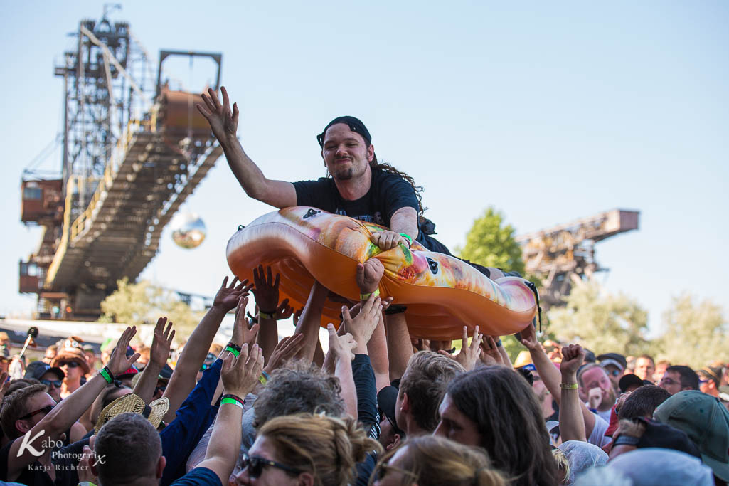 Mittlerweile schon routiniert zogen wir in Richtung Sachsen-Anhalt zum härtesten Wochenende des Jahres – das Full Force Festival in Ferropolis. Die „neue“ Location ist immer noch beeindruckend und wie geschaffen für eine Veranstaltung wie diese. Am Wochenende geben sich hier also Schwergewichte wie PARKWAY DRIVE, ARCH ENEMY und LIMP BIZKIT die Ehre und feiern unter Stahlbaggern mit tausenden von Metalheads - geil!Die Anreise verlief gewohnt unkompliziert, die Security vor Ort wusste bestens Bescheid und lenkte die feierwütige Meute auf ihre Campingplätze. Auch in diesem Jahr wurden einige Änderungen vorgenommen, um sich stetig zu verbessern und die Festivallocation immer besser nutzen zu können.