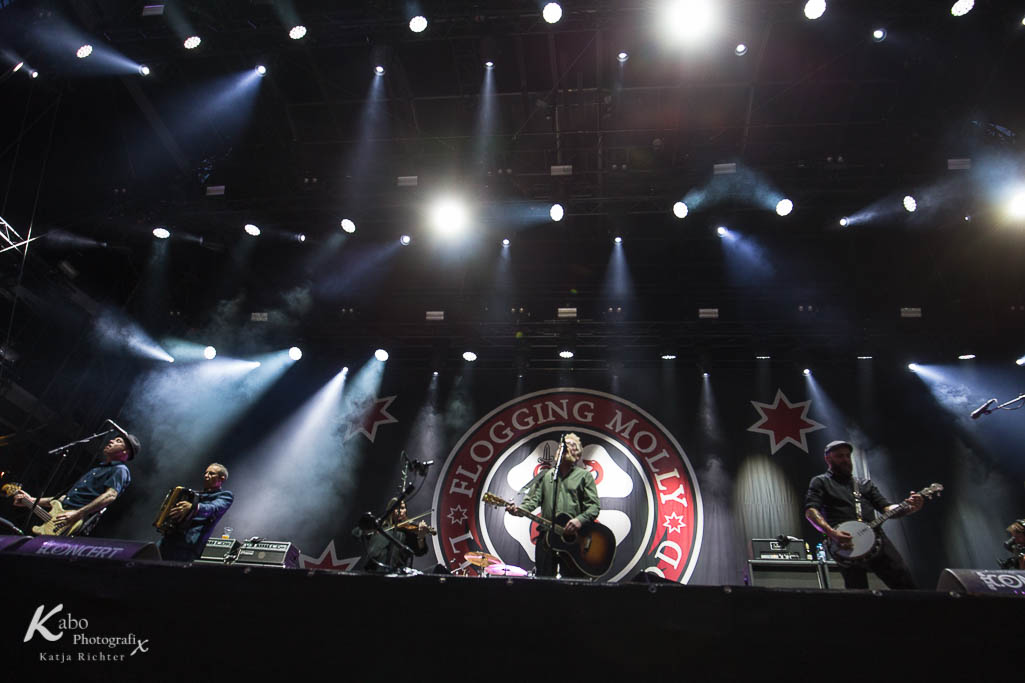einfach ein krankes Duo! Damit waren wir also bestens gerüstet, um bei FLOGGING MOLLY wieder alles rauszutanzen, was nicht mit nach Hause genommen werden soll.