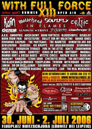 Was bleibt sind Erinnerungen an 3 unheimlich geniale Tage, voller musikalischer Kracher und netten neuen Erfahrungen und vor allem Erinnerungen an Staub. Die anfänglichen Startschwierigkeiten waren wie weggeblasen und für mich war das With Full Force mal wieder eine Bereicherung. Roitzschjora wir sehen uns 2007 wieder!