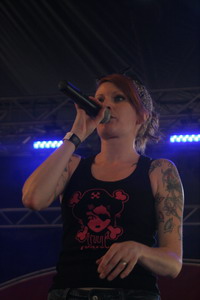 extremen Gegensatz zum schweren Death-Metal von Cannibal Corpse dar. Aber eigentlich war die Gute-Laune-Musik der Londoner zu diesem Zeitpunkt genau das Richtige. Die fröhliche Stimme und Stimmung von Frontfrau Elizabeth „Liz“ Jane Rose war eine willkommene Abwechslung zum ansonsten dominierenden Männer-Metal-Hardcore-Geschrei. Auch Deadline sind mit einem neuen Album im Gepäck („Bring The House Down“) auf Tour unterwegs. Das frisch, frei, fröhliche Gehüpfe der flippigen Liz und der melodische Gesang in Kombination mit dem druckvollem Instrumentensound der Herren machte den Gig zu einer freudvollen Party. Die Leichtigkeit der Band steckte an, entspannte und motivierte zu einem Dauerlächeln. Also, ein weiterer Erfolg an diesem schönen Sommerwochenende. [Tanja]