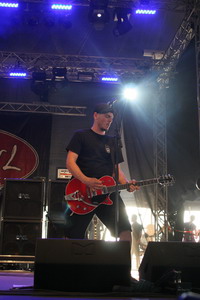 Sehr gefreut hab ich mich auf Melody-Punkrock von DOWN BY LAW mit fast 20järiger Tradition, komprimiert auf 45 Minuten. Gut, man sieht den Helden der Skater Scene ihr Alter vielleicht etwas an, aber in die Jahre gekommen oder überholt wirken sie noch lange nicht. Feuer haben sie noch immer die vier Amis. Genug Power für die Zeltbühne auf dem Force und für eine ausgedehnte Europatour vorneweg allemal. Sind auch erstaunlich gut angekommen im bunt gemischten Publikum aus Teenies und Ü30ern mit ihrem Abriss aus 20 Jahren Bandgeschichte in wechselnder Besetzung. Sänger Dave Smalley hat das Publikum im Griff und DBL wussten den Mob zu beschäftigen, so dass es auch mir im Tanzbein juckte und ich mich zu der ein oder anderen ausgelassenen Bewegung hinreißen ließ. [Daniel]