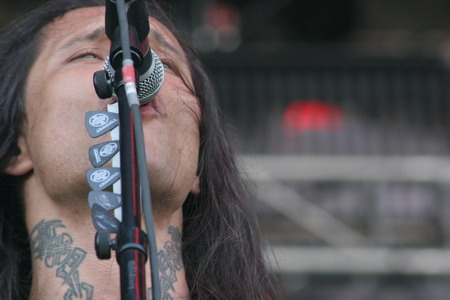 Ich hatte die Ungarn erst Ende vergangen Jahres als Vorband von Volbeat live gesehen, wobei sie mich nicht wirklich überzeugen konnten. Deswegen war ich an diesem Samstagnachmittag auch nicht wirklich scharf auf den Thrash-Hardcore-Mix, aber ich hatte halt Lust auf laute Musik. Also haben wir uns die Band vom Bierzelt aus angesehen und ich bin zum gleichen Entschluss gekommen, wie schon vor einigen Monaten: Kennst du einen Song, kennst du alle. Ich habe diesmal nicht drauf geachtet, ob wieder jedes zweite Wort „Fuck“ war, aber ich vermute mal schon. Ganz am Rande habe ich gehört, dass der Sänger ausgesprochen hübsch sein soll, aber diese Tatsache machte den Gig für mich in diesem Moment nicht besser. Sorry an all die Ektomorf Fans dieser Welt, die mir wahrscheinlich am liebsten an die Gurgel springen würden, Musik wird nunmal subjektiv bewertet und die Ungarn sind eben einfach nicht meine Band. [Tanja]