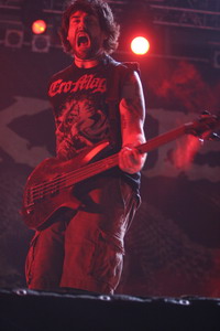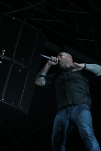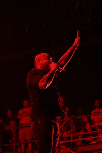 Wohl auch nicht zum ersten Mal dabei sind AS I LAY DYING. Ich kannte sie bisher zugegebener Maßen nur als T- Shirt Aufdruck unseres liebenswerten Zivies Goldlöckchen (liebe Grüße an dieser Stelle!) und von vielleicht vier Liedern auf meinem Rechner. Ansonsten sind sie bisher an mir etwas vorbei gegangen. Ich gelobe Besserung! (Das hoffe ich! Die neuste AILD-Platte kennst du übrigens auch von unserer Fahrt nach Puch. Na, wohl nicht aufgepasst? (Anm. Tanja)). Denn was ich von den Amis an diesem Abend zu hören bekam, hat schon echt Spaß gemacht. Metalcore kommt an. Diese Meinung teilten viele mit mir, denn es war richtig voll und die Haare wurden ordentlich geschüttelt. Außerdem war tanztechnisch mächtig Betrieb vor der Bühne, Mosh Pit, Circle Pit, Crowdsurfer, alles was Beine hatte oder nicht war in Bewegung, sprang und flog umher. Das waren fünfzig Minuten Vollgas. Man schien sich auch einem kleinen Wettbewerb mit Heaven Shall Burn und Sick of it All hingegeben zu haben: Wer hat den größeren Circle Pit und wer die steilere Wall of Death? Ich würd sagen knapp verloren, Punktsieg für HSB, aber auf jeden Fall beeindruckend. AILD und HSB kommen im November nochmal gemeinsam auf Tour, vielleicht lässt sich der direkte Wettbewerb da noch fortsetzen. Ich werd auf jeden Fall dabei sein! [Daniel]
