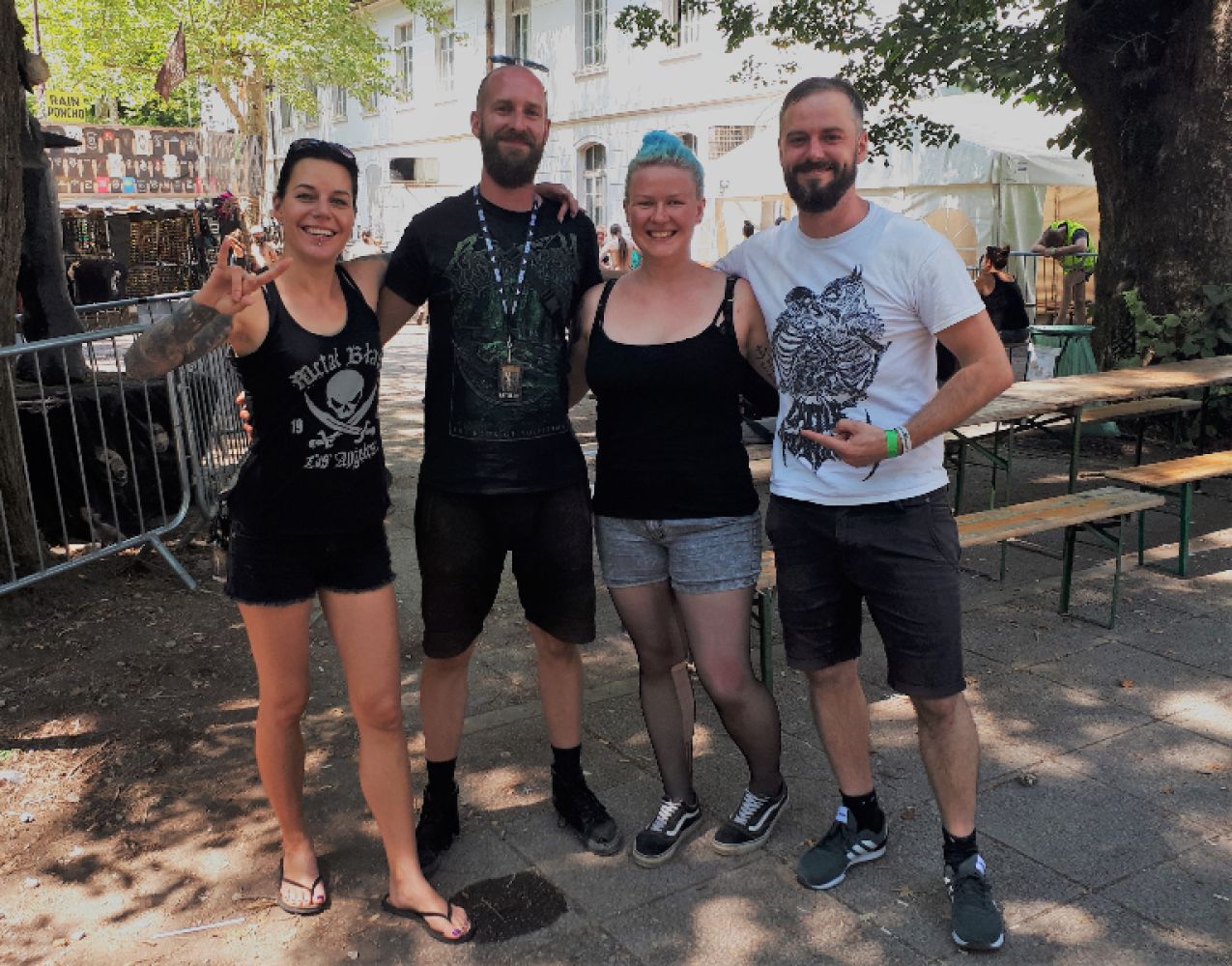 Britta: Ich weiß gar nicht, wie das in anderen Musikrichtungen ist, die so populär sind wie Metal. Ich meine, Metal wird ja auf der ganzen Welt gehört und geliebt und hat sehr viele Anhänger, aber hat verhältnismäßig wenig Möglichkeiten Kulturgelder zu beantragen und sowas. Das verteilt sich immer schön auf Jazz und ich weiß nicht was. Ich meine, vielleicht wissen die auch einfach besser, wie man sowas macht, aber der ganze Metal lebt eigentlich von Leuten, die freiwillig kostenlos arbeiten. Oder halt vielleicht sogar noch Geld reinstecken, um die Szene am Leben zu erhalten. Also, Menschen wie du (gemeint ist die Red., Anm. d. Red.), die in ihrer Freizeit dann auch Reviews schreiben oder die hier auf dem Festival zum Beispiel Zelte mit aufbauen und photographieren und so weiter. Das würde alles gar nicht funktionieren, wenn nicht so viele Menschen das alles kostenlos machen würden. Und ich finde es auch okay, was kostenlos zu machen, aber manchmal ist man eben dann an der Schwelle von "Wie viel Zeit kann ich in ein Projekt investieren, ohne dass ich meinen Job kündigen muss? Aber wie viel Zeit müsste ich eigentlich rein geben, damit ich davon dann irgendwann mal leben kann?".