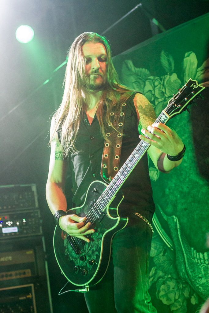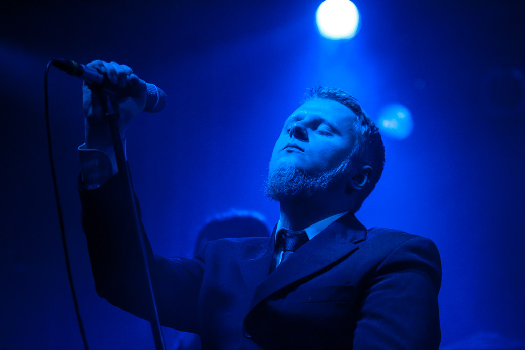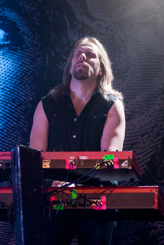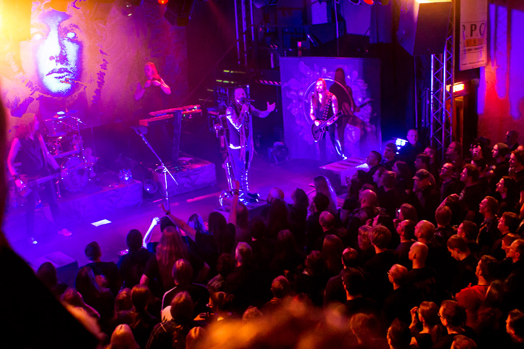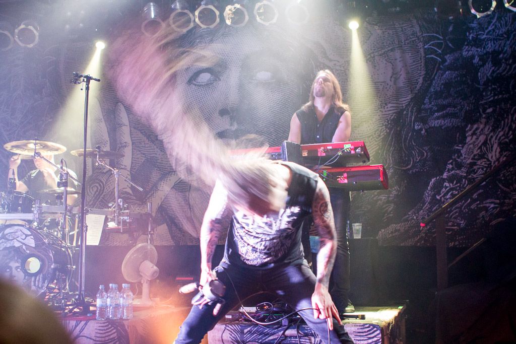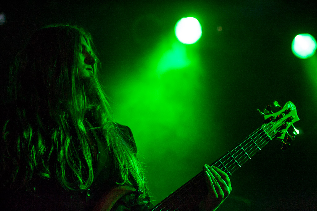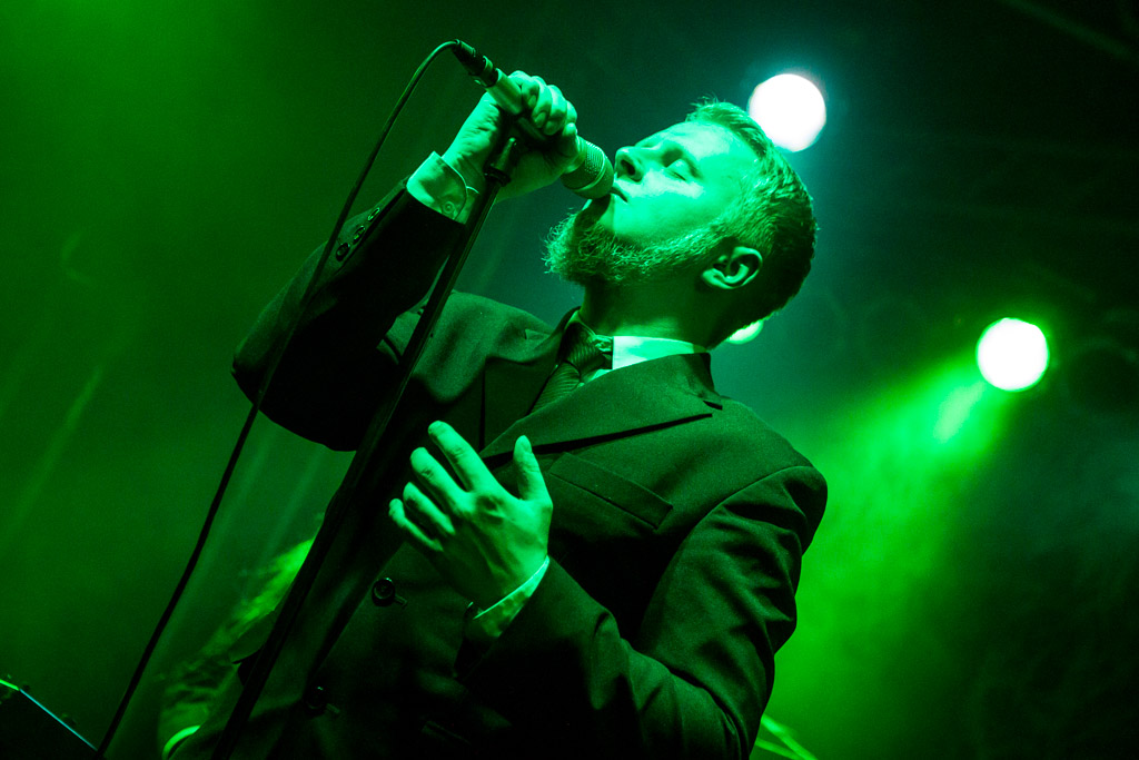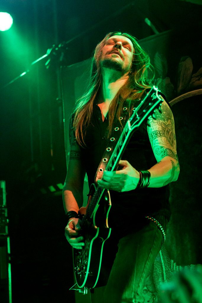 Bereits ordentlich gefüllt ist der Saal, als die Dänen ihr Spektakel pünktlich zur Tagesschau beginnen. Hamferd präsentieren ihr aktuelles Album „Evst". Musikalisch bieten sie klassischen, schwermütigen Doom Metal, der durchaus als eine etwas epischere Version der jüngeren Saturnus durchgeht. Die Songs – textlich in der Heimatsprache gehalten – werden von den sechs Musikern, die stilvoll in feinem Zwirn bzw. Anzügen auf der Bühne stehen, geradezu feierlich zelebriert. Das Stageacting ist erwartungsgemäß zurückhaltend, was nicht nur am begrenzten Raum durch die bereits aufgebaute Amorphis-Backline liegt, dafür setzt man die langen Doom-Epen durch dezente aber wirkungsvolle Licht-Effekte und typische Gesten ganz gut in Szene. Die tiefen Growls von Sänger Jón sind dabei so wundervoll erdig, wie der kehlige Klargesang gewöhnungsbedürftig ist. Trotzdem kommen Hamferd gut an und sind mit Sicherheit ein Hoffnungsträger für Doom-Jünger. Zwar kann man den Genre-Größen noch kein Wasser abgraben aber die Band bietet ein solides, stimmiges Programm, das den Abend durchaus bereichert...