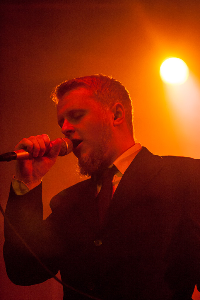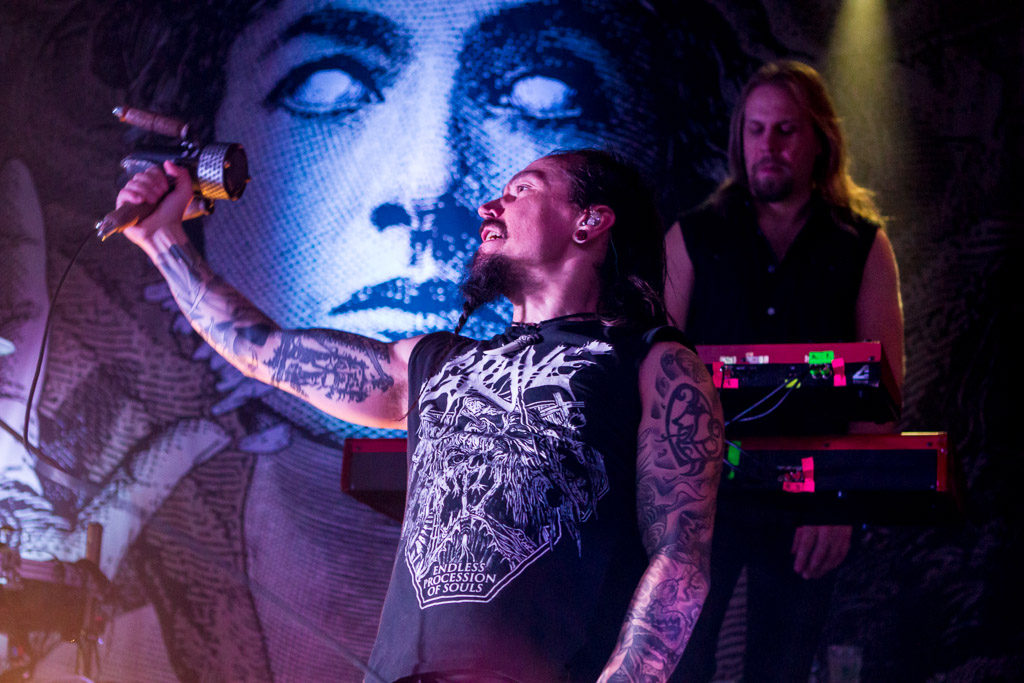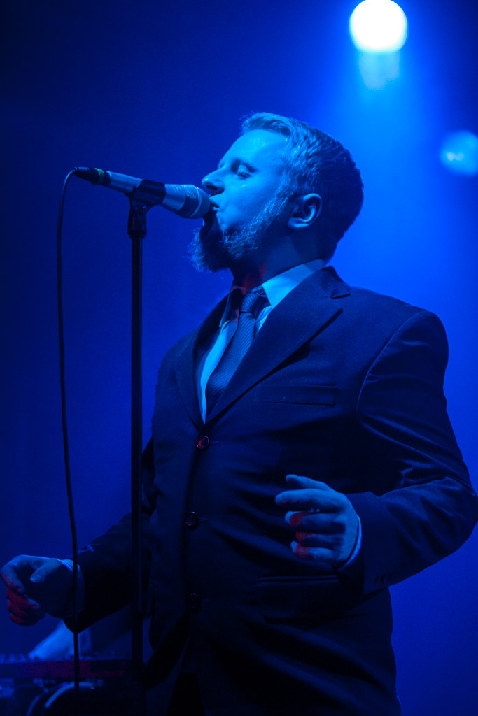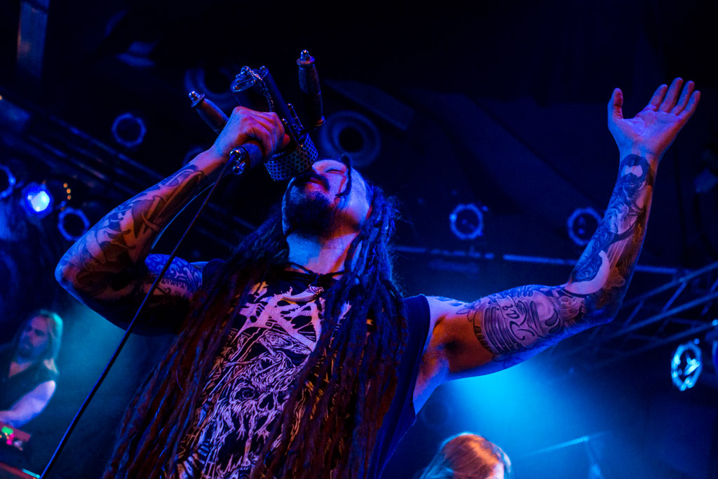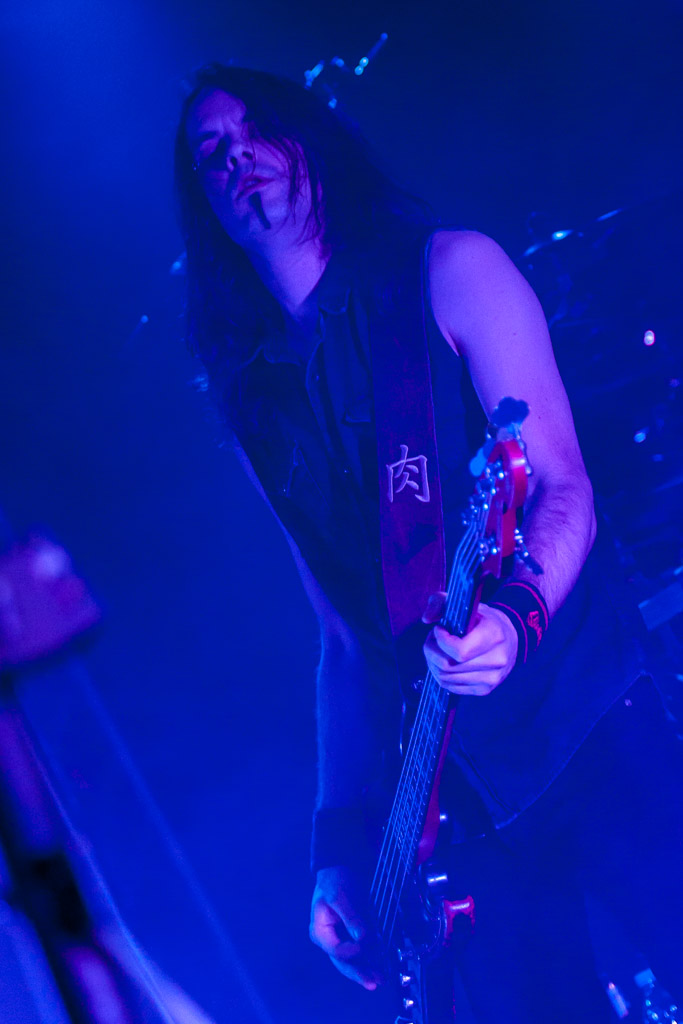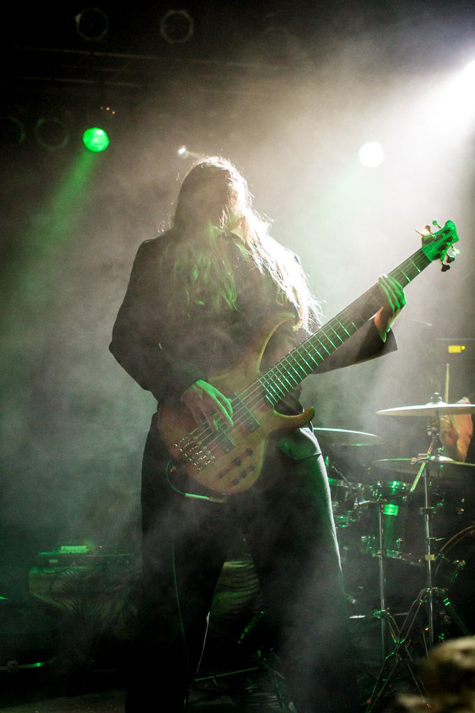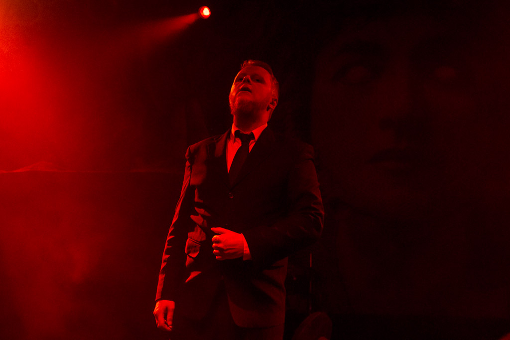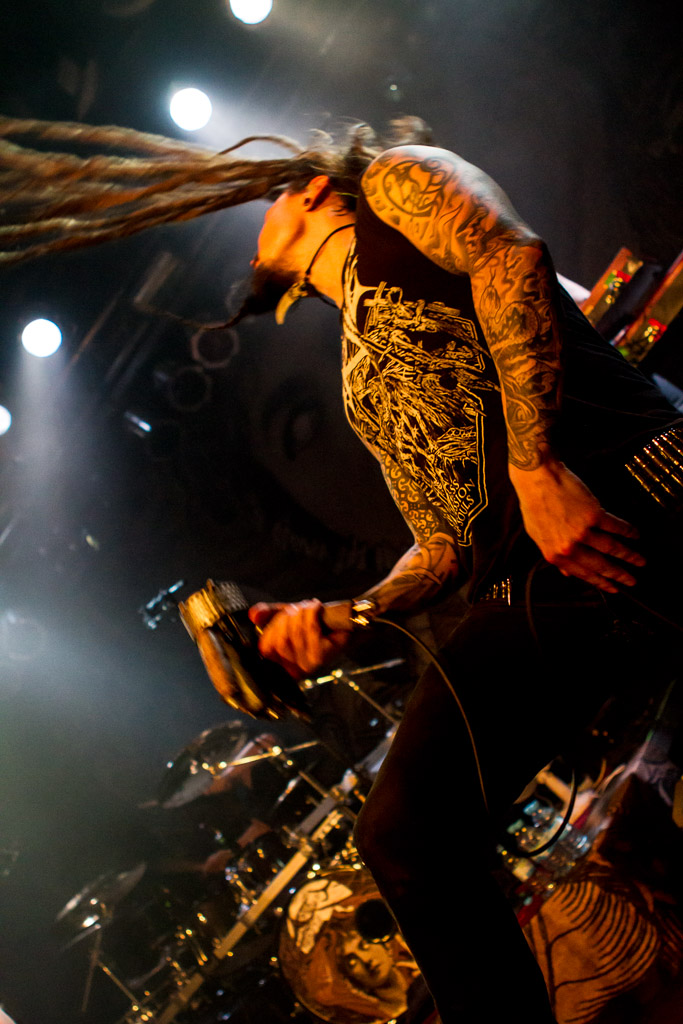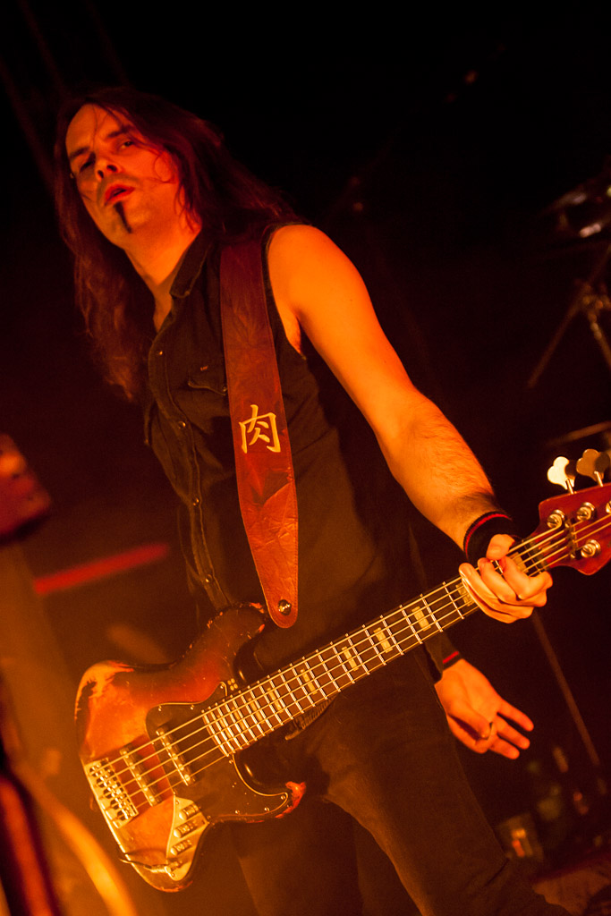 Bereits ordentlich gefüllt ist der Saal, als die Dänen ihr Spektakel pünktlich zur Tagesschau beginnen. Hamferd präsentieren ihr aktuelles Album „Evst". Musikalisch bieten sie klassischen, schwermütigen Doom Metal, der durchaus als eine etwas epischere Version der jüngeren Saturnus durchgeht. Die Songs – textlich in der Heimatsprache gehalten – werden von den sechs Musikern, die stilvoll in feinem Zwirn bzw. Anzügen auf der Bühne stehen, geradezu feierlich zelebriert. Das Stageacting ist erwartungsgemäß zurückhaltend, was nicht nur am begrenzten Raum durch die bereits aufgebaute Amorphis-Backline liegt, dafür setzt man die langen Doom-Epen durch dezente aber wirkungsvolle Licht-Effekte und typische Gesten ganz gut in Szene. Die tiefen Growls von Sänger Jón sind dabei so wundervoll erdig, wie der kehlige Klargesang gewöhnungsbedürftig ist. Trotzdem kommen Hamferd gut an und sind mit Sicherheit ein Hoffnungsträger für Doom-Jünger. Zwar kann man den Genre-Größen noch kein Wasser abgraben aber die Band bietet ein solides, stimmiges Programm, das den Abend durchaus bereichert...