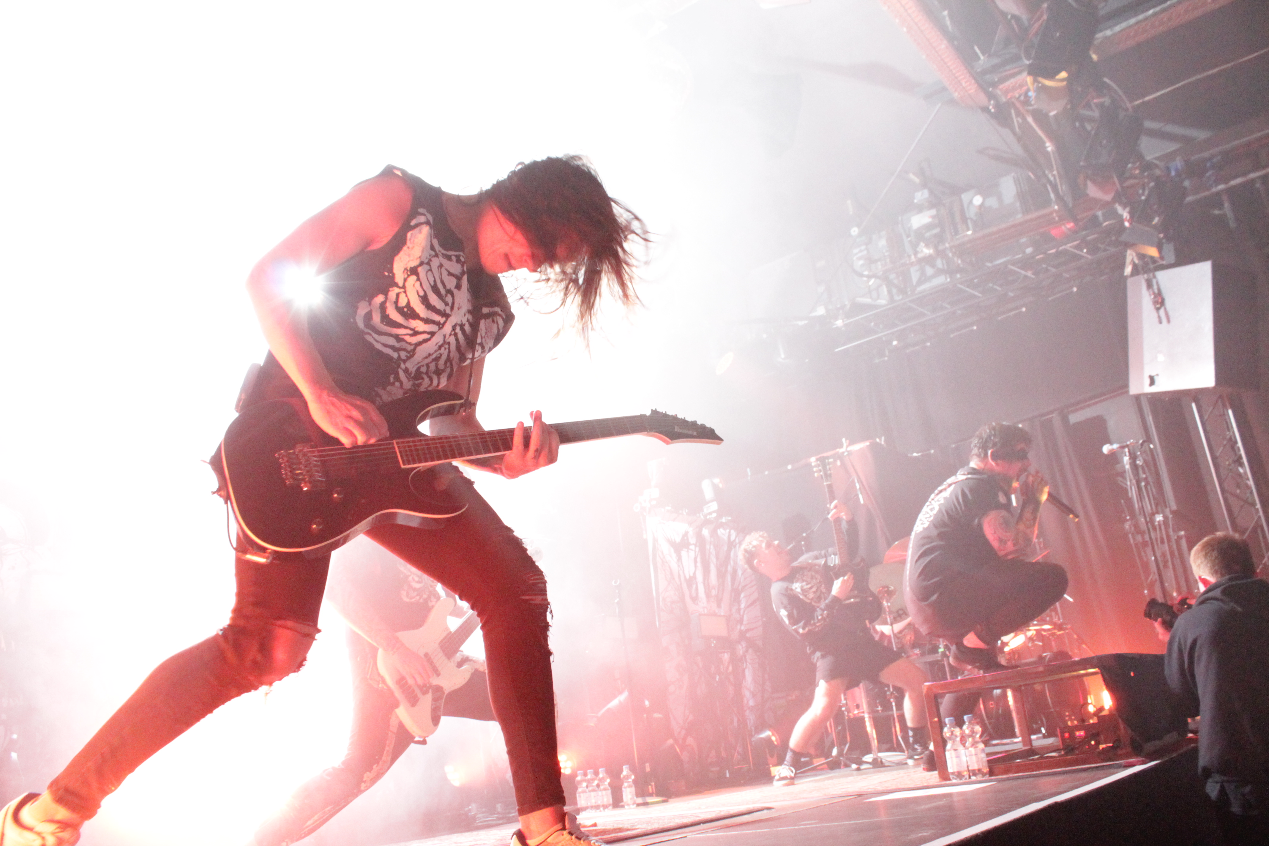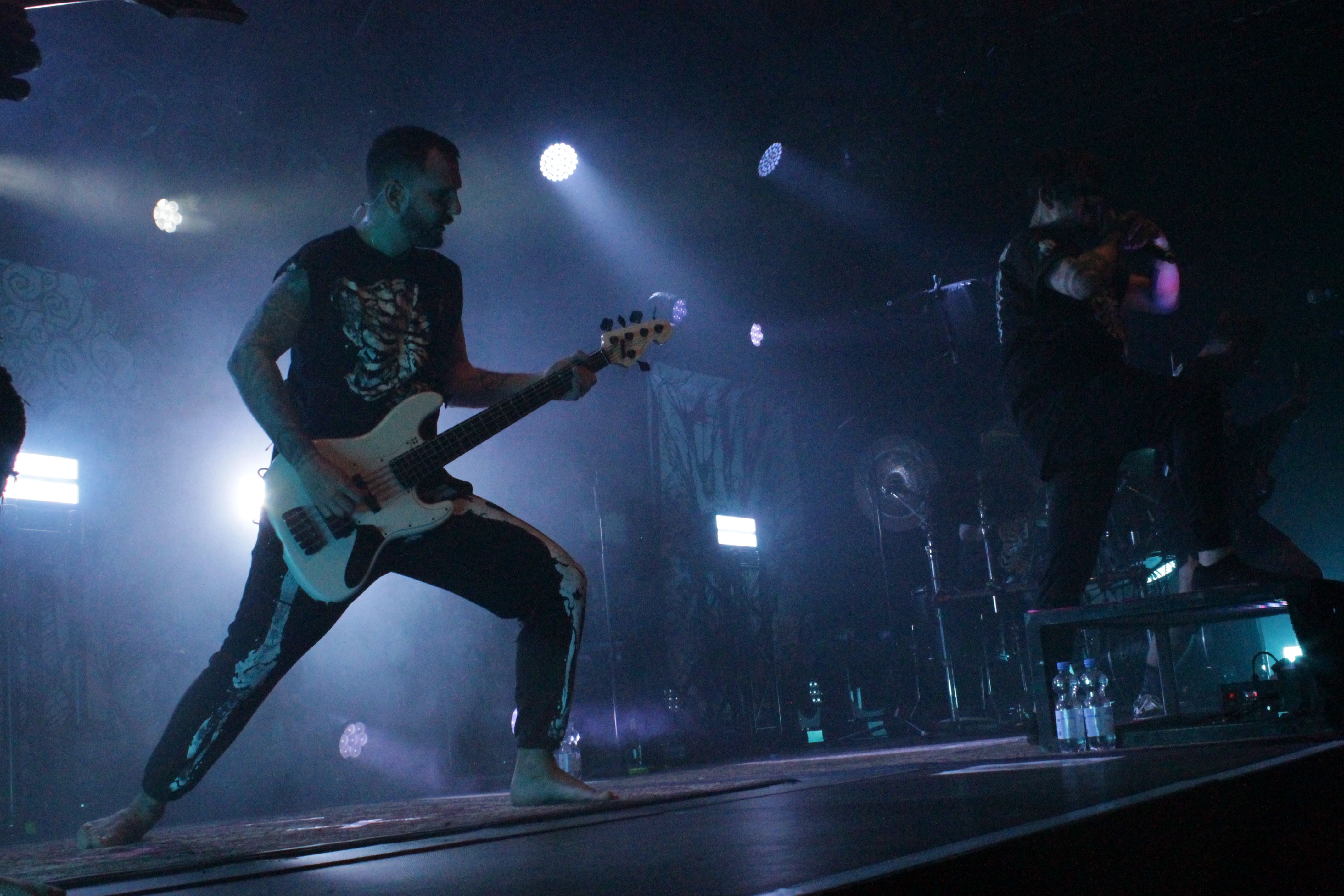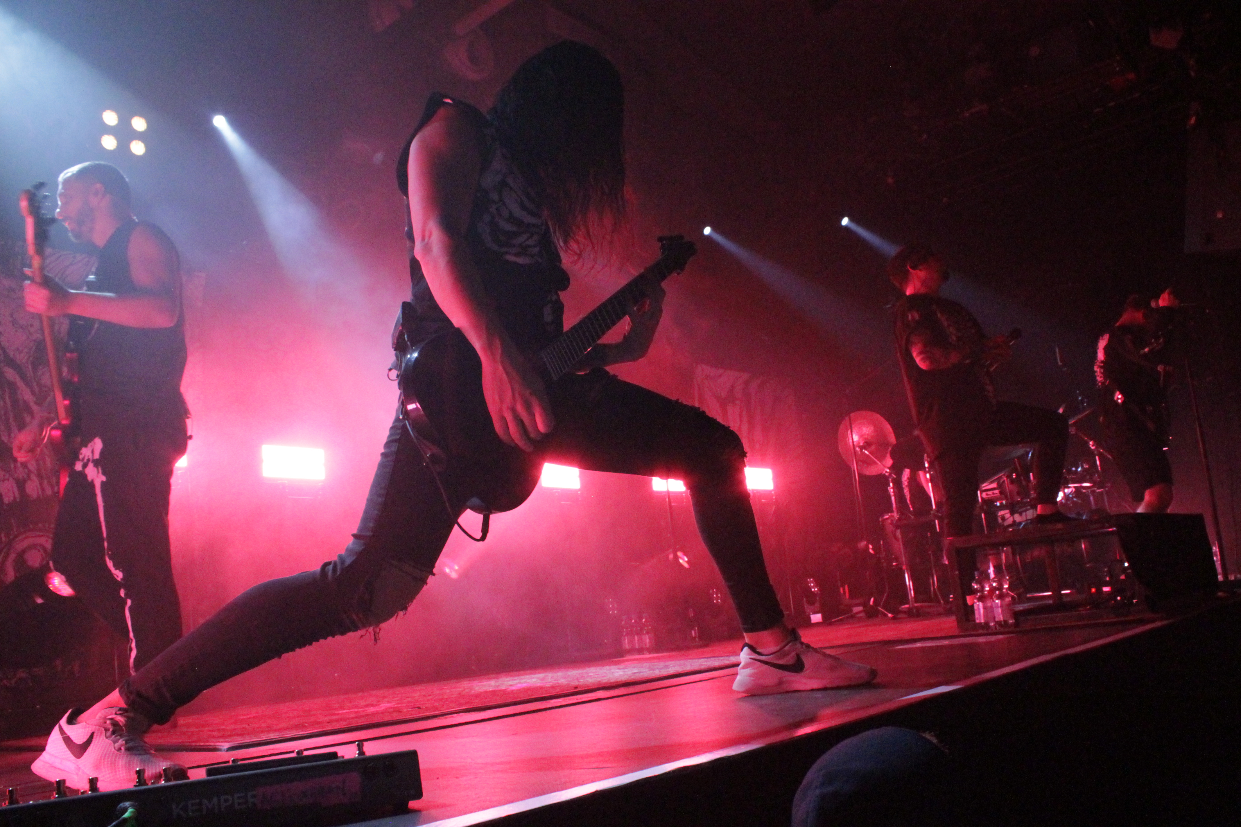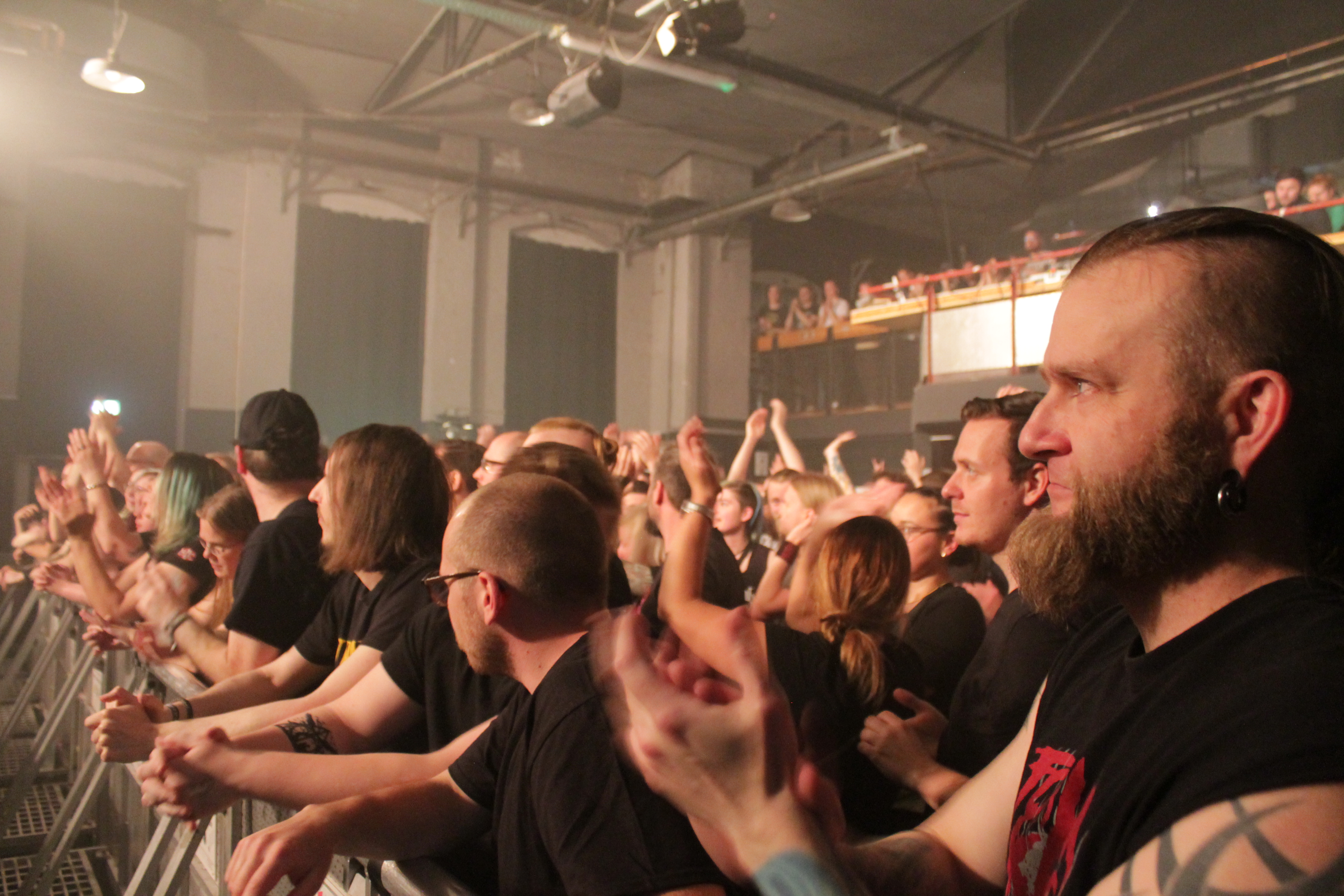 Dann war es endlich so weit. Zu den melodischen Klängen von "Everybody" von den selbst in Metalkreisen nicht ganz unbekannten BACKSTREET BOYS betraten CALLEJON die Bühne, und zwar mit "Willkommen in Metropolis" als Opener - damit hatte ich nicht gerechnet! Es folgte der ordentliche Banger "Palmen aus Plastik" vom Rap-Cover-Album "Hartgeld im Club". Mit "Blitzkreuz" begaben wir uns noch weiter in die Vergangenheit, was für einen Callejon-Nostalgiker wie mich natürlich genau die richtige Richtung der Zeitlinie darstellte. Es dauerte bis zum vierten Song, bis Callejon mit "Mary Shally" den ersten Song ihres aktuellen Albums "Eternia" spielten. Direkt danach ging es zurück in die Vergangenheit mit "Dunkelherz" vom 2015er Album "Wir sind Angst". Offensichtlich steckt eben jenes dunkle Herz in den meisten Fans, denn der Moshpit bebte während jeder Strophe, nur um beim Refrain in einen lautstarken Chor umzuwandeln. Doch zurück in die Metropole, denn mit "Gottficker" spielten CALLEJON nicht nur einen der stärksten Songs des vorherigen Albums, sondern sorgten auch für noch mehr Schweiß, der von der Decke tropfte. Damit niemand zum Luftholen kam, wurde direkt mit der dritten Version von "Porn from Spain" weitergepowert. Es bereitete definitiv viel Freude, einen ganzen Raum "Ole, ole, ganz Deutschland hasst die AFD" rufen zu hören. Zum Runterkommen folgte "Utopia" vom eher ambivalent aufgenommenen Album "Fandigo", wobei der ganze Raum überraschend textsicher war - klasse! "Die Krähe mit dem Schädelbauch" folgte, und langsam fragte ich mich, ob es nicht doch eher die Metropolis-Tour war (was mich nicht im Geringsten gestört hätte, obwohl ich "Eternia" auch wirklich gut finde!). Mit dem Ärzte-Cover "Schrei nach Liebe" wurde das ganze Publikum erneut in Wallung gebracht, und das mit einer Message, die leider an Aktualität nicht verliert. Mit der anschließenden Ballade "Kind im Nebel" durften sich alle zwar etwas beruhigen, aber keiner konnte Luft holen, da alle leidenschaftlich mitsangen - ein Gänsehautmoment! Aus dem Nebel ging es in "de(r)n Wald", einem weiteren Song von "Metropolis". Anscheinend liegen hinter dem Wald wieder die Minen, denn unsere musikalische Erzählung ging mit "Unter Tage" weiter. Doch Callejon wären nicht Callejon, wenn sie sich nicht mit einem Knall verabschieden würden. In diesem Fall sogar mit zwei: Erst "Was du Liebe nennst", bei dem im Pit noch einmal richtig die Post abging, und anschließend "Porn from Spain 2", was dazu führte, dass unzählige schwitzende Fans auf dem Rückweg mit einem breiten Grinsen umdrehten, um noch einmal richtig abzufeiern.