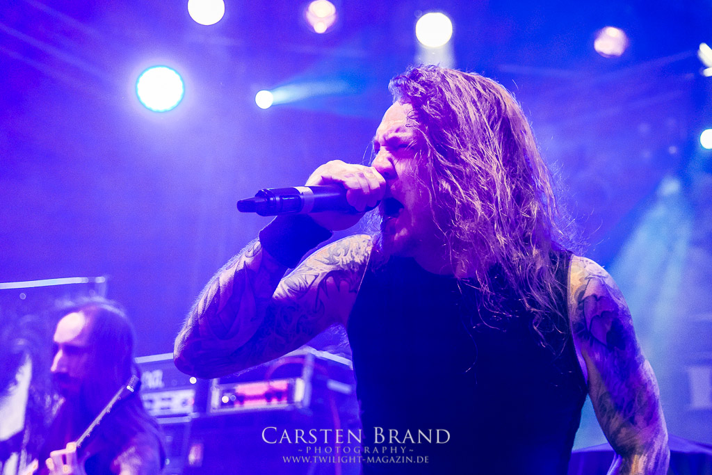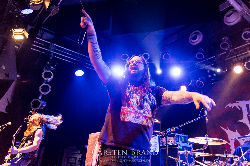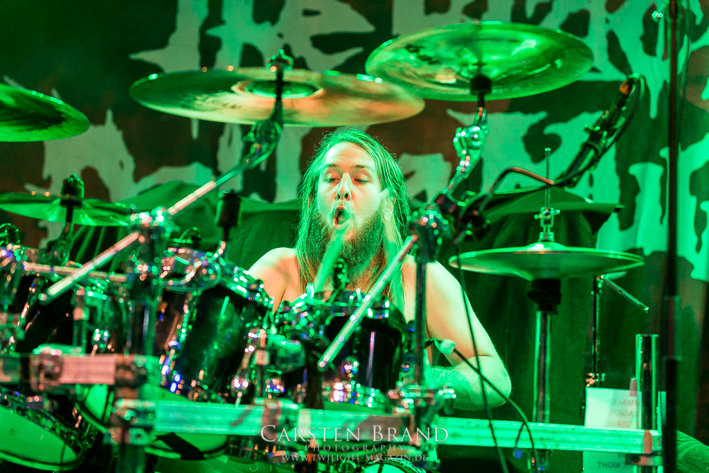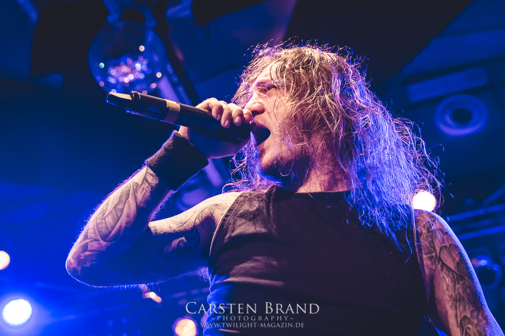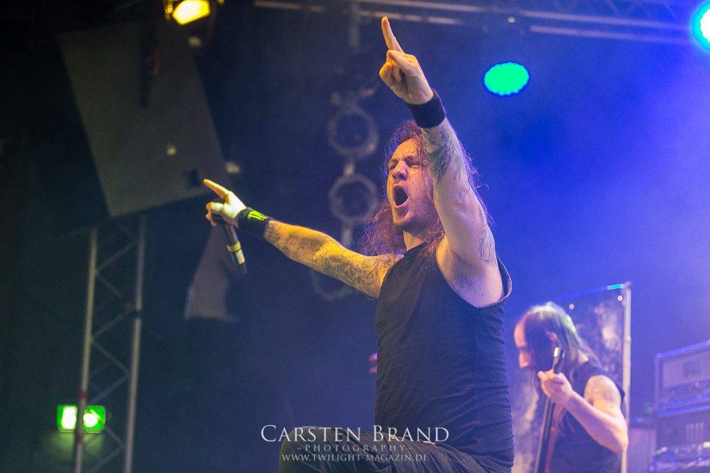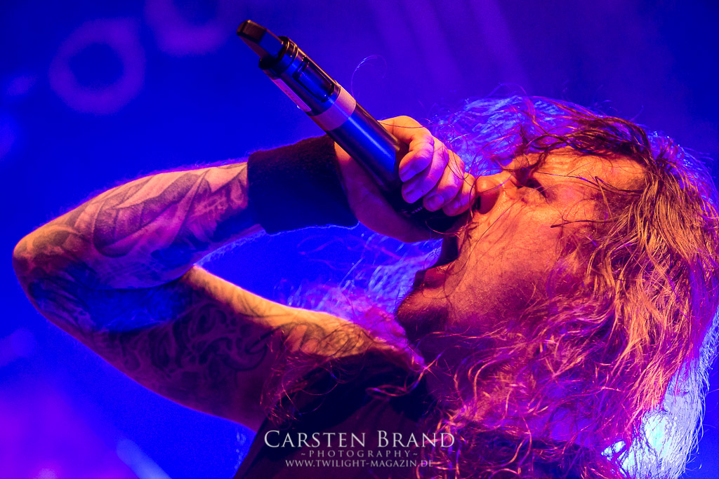 THE BLACK DAHLIA MURDER schließen bedingungslos an das hohe Spietempo an und legen als zweite Band noch einmal eine Schippe drauf. Die Band hat sichtlich Spaß und präsentiert sich in einer außerordentlich guten Verfassung. Sänger Trevor nutz beinah den gesamten Platz der Bühne un springt wie angestochen hin und her. In einem wahnwitzigen Tempo knüppeln die Musiker voran, immer wieder punktuiert von melodischen Abschnitten. Ein Mix, der auch beim Publikum gut ankommt. Mittlerweile haben wohl alle Besucher den Weg in das Musikzentrum gefunden und man merkt zum ersten Mal, dass die Location an diesem Abend ausverkauft ist. Der Stimmung tut dies in keinster Weise Abbruch. Neben headbangenden Meuten gibt es auch immer wieder kleinere Moshpits.