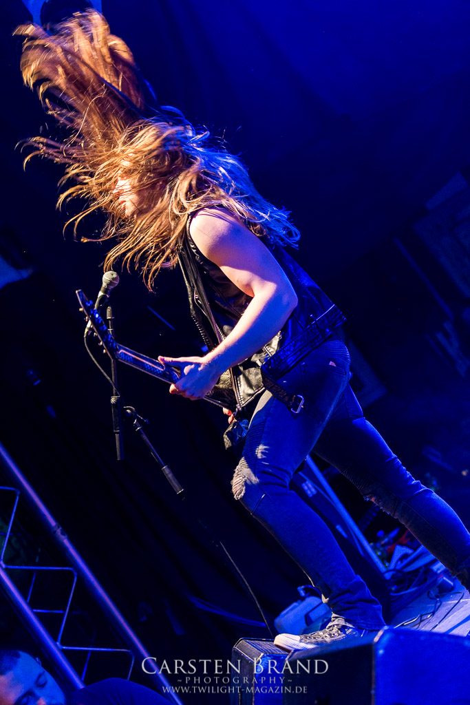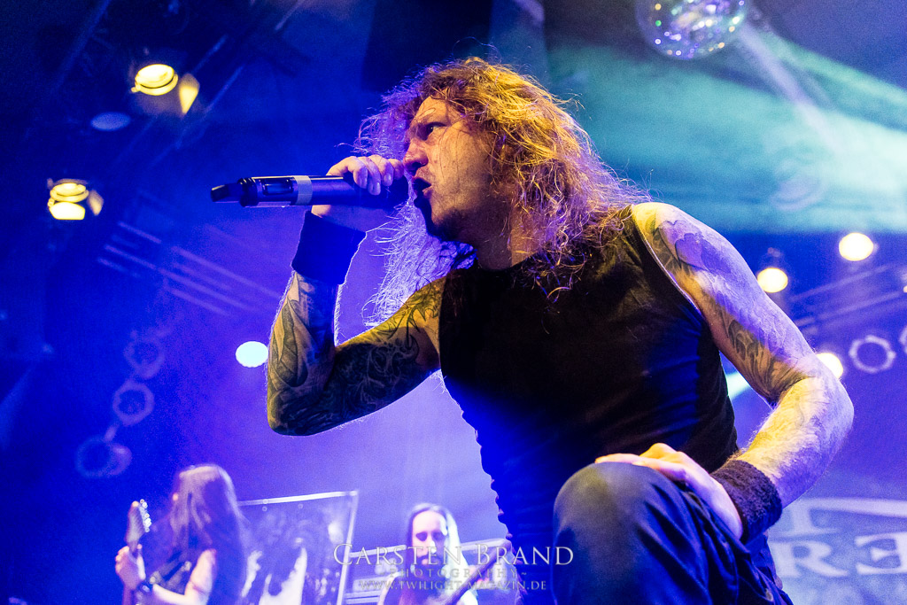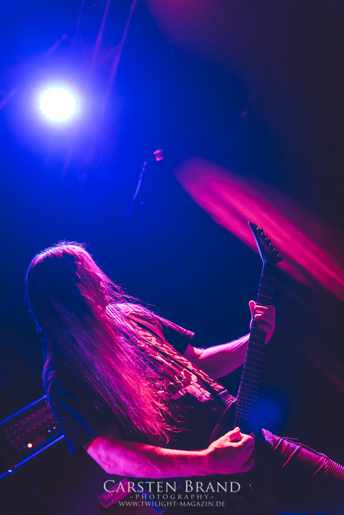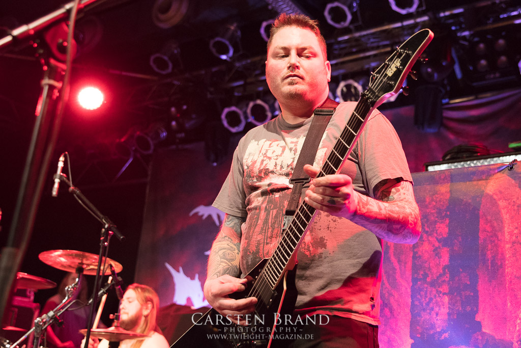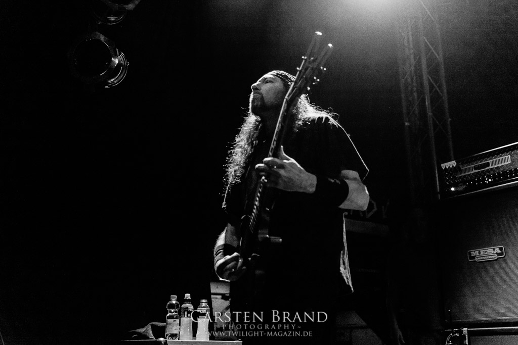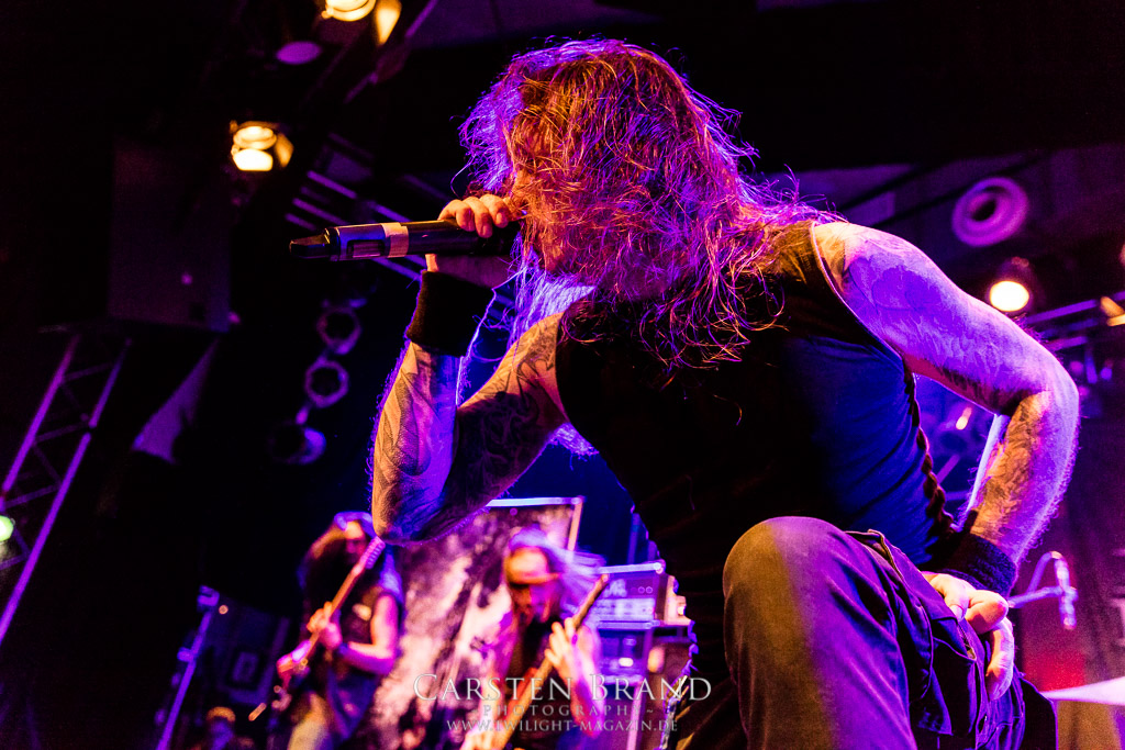 THE BLACK DAHLIA MURDER schließen bedingungslos an das hohe Spietempo an und legen als zweite Band noch einmal eine Schippe drauf. Die Band hat sichtlich Spaß und präsentiert sich in einer außerordentlich guten Verfassung. Sänger Trevor nutz beinah den gesamten Platz der Bühne un springt wie angestochen hin und her. In einem wahnwitzigen Tempo knüppeln die Musiker voran, immer wieder punktuiert von melodischen Abschnitten. Ein Mix, der auch beim Publikum gut ankommt. Mittlerweile haben wohl alle Besucher den Weg in das Musikzentrum gefunden und man merkt zum ersten Mal, dass die Location an diesem Abend ausverkauft ist. Der Stimmung tut dies in keinster Weise Abbruch. Neben headbangenden Meuten gibt es auch immer wieder kleinere Moshpits.