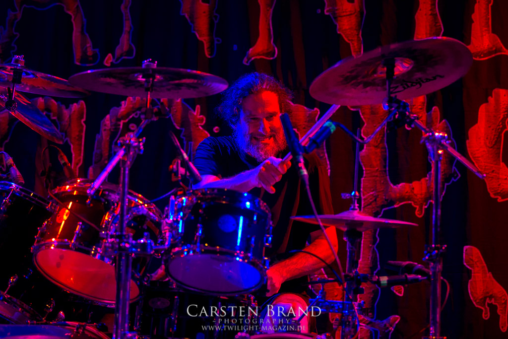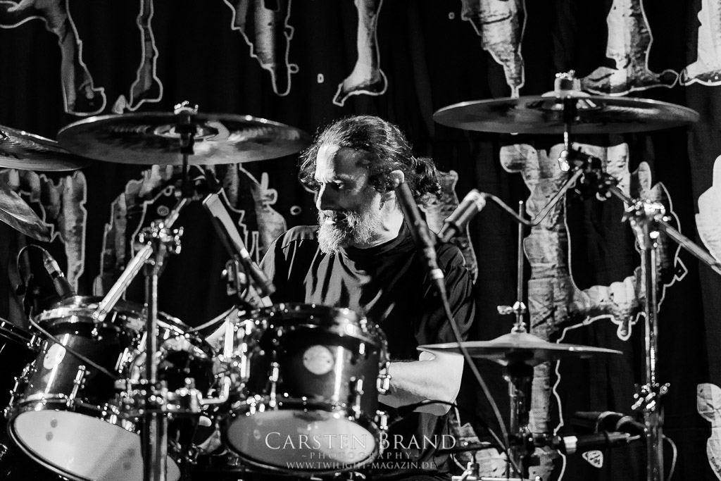 Danach folgt der Umbau. 3 Bands spielen, 3 Schlagwerke wurden aufgebaut. So gestalten sich beide Umbaupausen an diesem Abend angenehm kurz und die Bühne wird jedes Mal ein Stück größer.