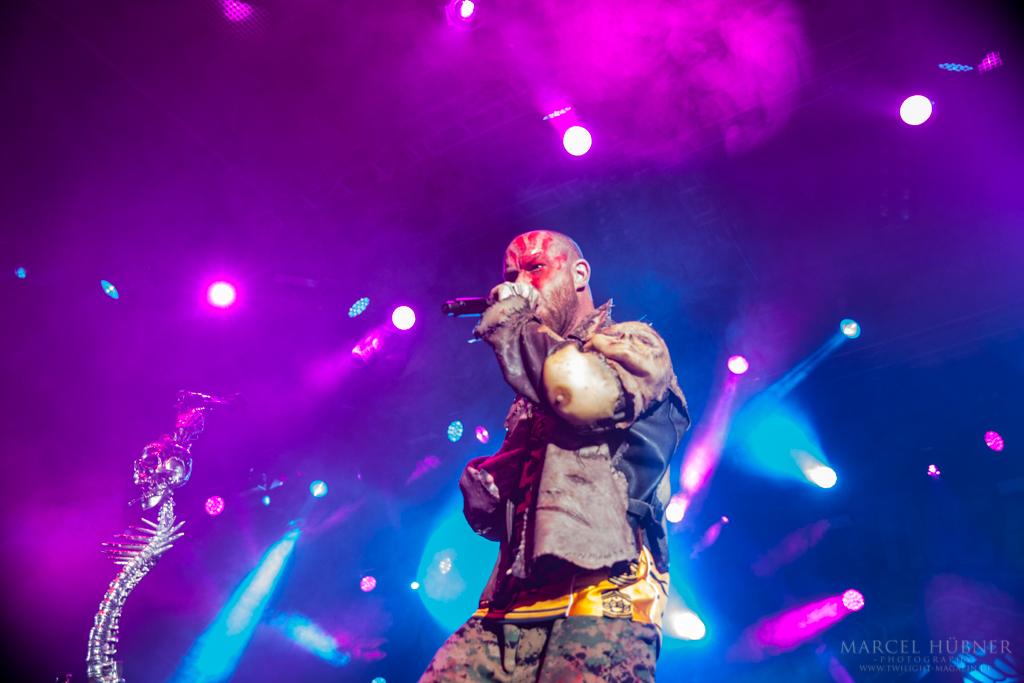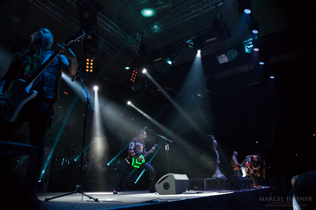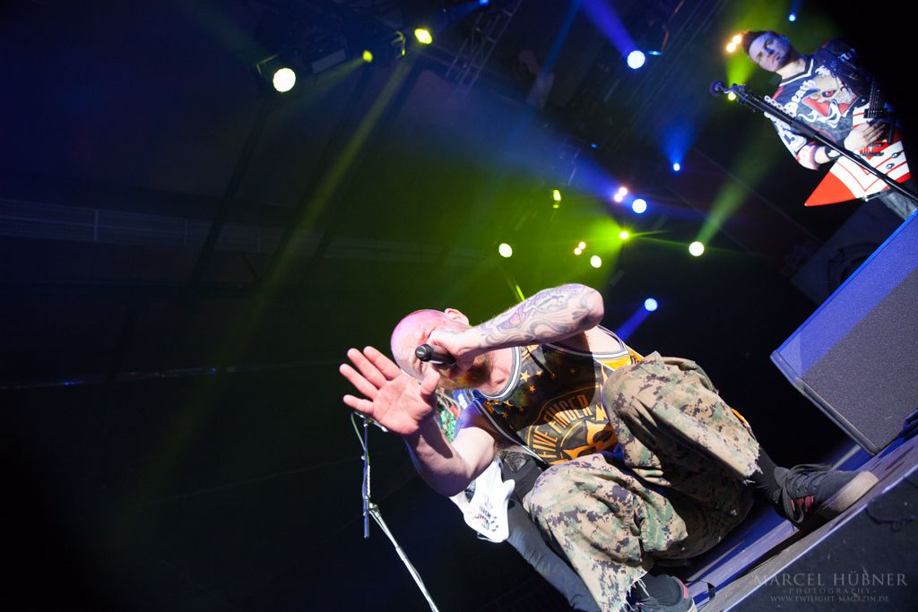 Als Five Finger Death Punch an der Reihe waren, war das Publikum wach und gab Vollgas. Sänger "Ghost" Mody spielte mit dem Publikum und selbst ein Trikot der Deutschen Fußball Nationalmannschaft durfte bei seinen Outfits nicht fehlen. Leider hatte er einige Probleme mit dem Mikrofon, was aber dank der überrangenden Lichtshow und dem fast perfekten Set unterging.