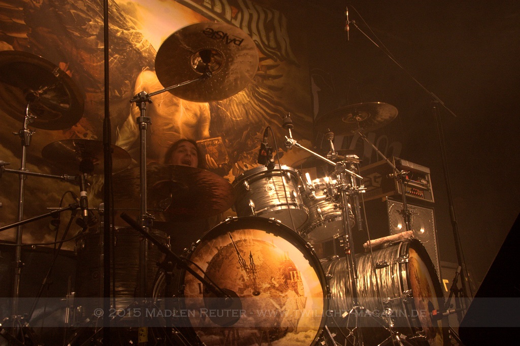 Der Sound war relativ schlecht gemischt, da hätte man so viel mehr rausholen können. Das fand ich wirklich extrem schade das man den Jungs so einen Stein in den Weg gelegt hatte. Die Doublebass hatte so gut wie alles übertönt und der Rest der Band hatte es schwer dagegen anzukämpfen. Vor allem Urban ist ziemlich untergegangen, dabei hat der Kerl doch so eine kraftvolle Stimme. Und auch die Lichtshow wurde eher minimalistisch gehalten und bot kaum spektakuläre Augenblicke.