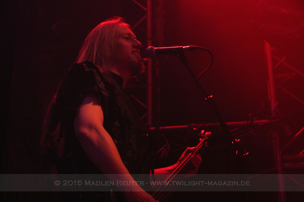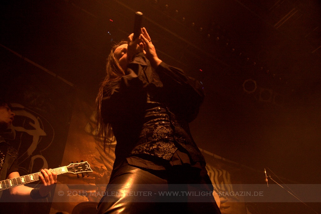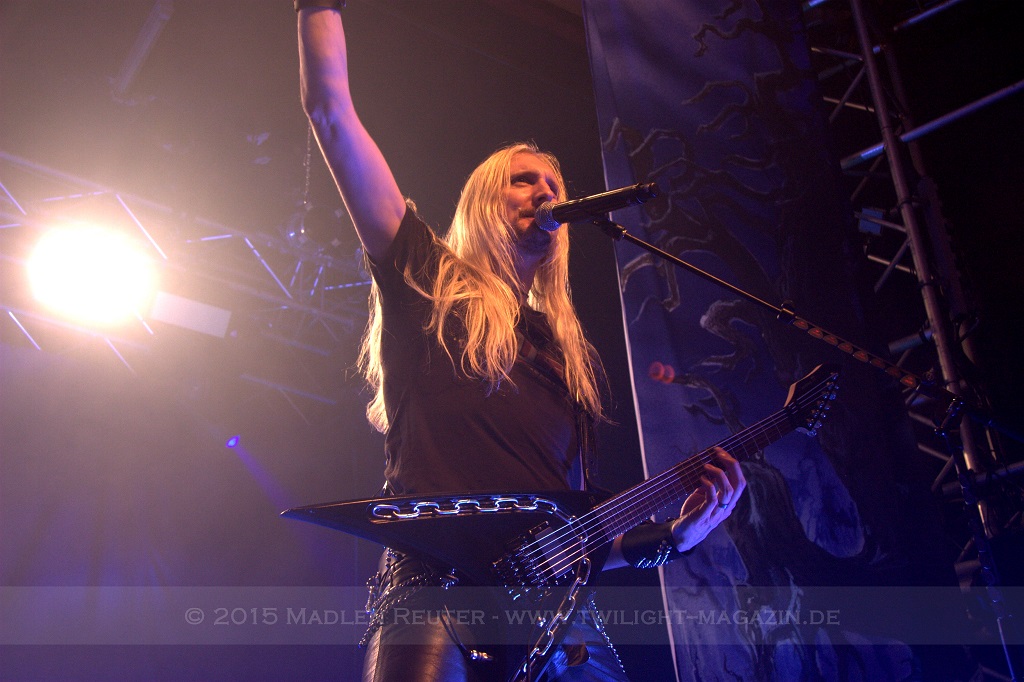 Als nächstes standen dann ORDEN OGAN auf der Agenda. Wie schon bei SERIOUS BLACK war der Sound eher mittelmäßig abgemischt. Das Schlagzeug war auch hier viel zu laut und übertönte alles andere. Allerdings war das Schlagzeug hier wirklich passig, denn das hat mal so richtig geknallt. Da hätte man nur die anderen Regler etwas nach oben schieben müssen und es wäre richtig geil gewesen. Insgesamt war der Sound hier allerdings schon deutlich besser als beim ersten Act des Abends. Zwar wurde die Lichtshow hier etwas düsterer und stimmungsvoller, war aber dennoch recht langweilig.