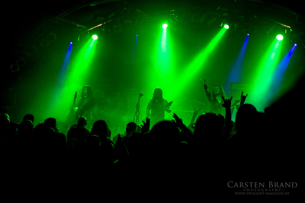 Vader entern als zweite Band die Bühne und preschen auch sogleich ohne viel Schnörkel los. Jeder der VADER einmal real erleben durfte, weiss um die Live-Qualitäten der Band. Und der Abend in der Markthalle macht da keine Ausnahme. "Tibi et Igni" lautet der Name des neuesten Silberlings und mit ein paar Liedern wird dieser erfolgreich in die Setlist integriert. Frontmann Peter ist sichtlich gut gelaunt und zeigt über kurze Ansagen immer wieder, dass der Kontakt zu den Fans eine wichtige Rolle für die Band spielt. Neben neueren Werken wird auch altbewährtes präsentiert und der immer mehr in Fahrt kommenden Meute um die Ohren gehauen. Mit "This is War" folgt ein Klassiker als krönender Abschluss eines mehr als soliden Auftritts, der jedcoh auch leider viel zu kurz gekommen ist.