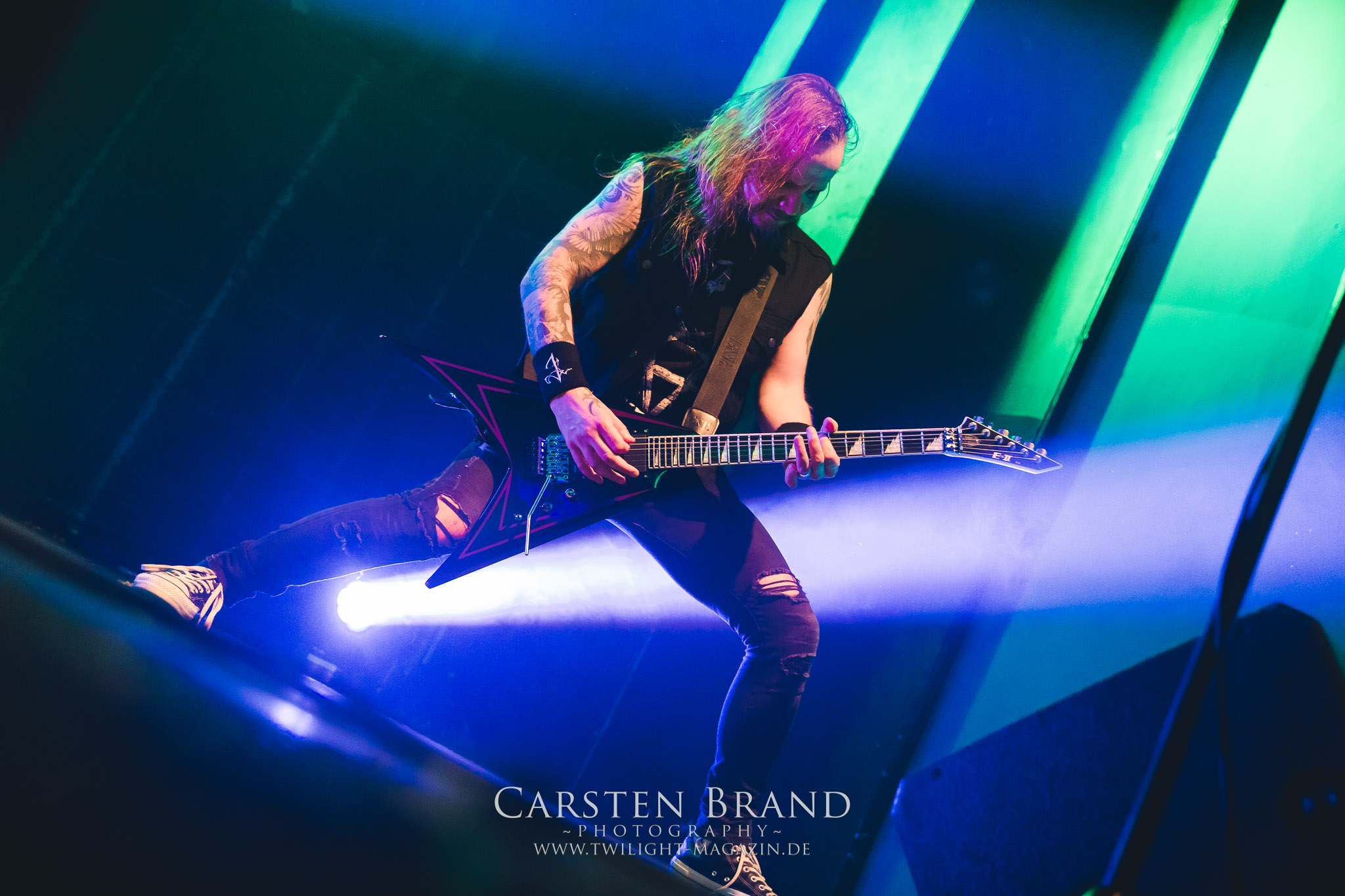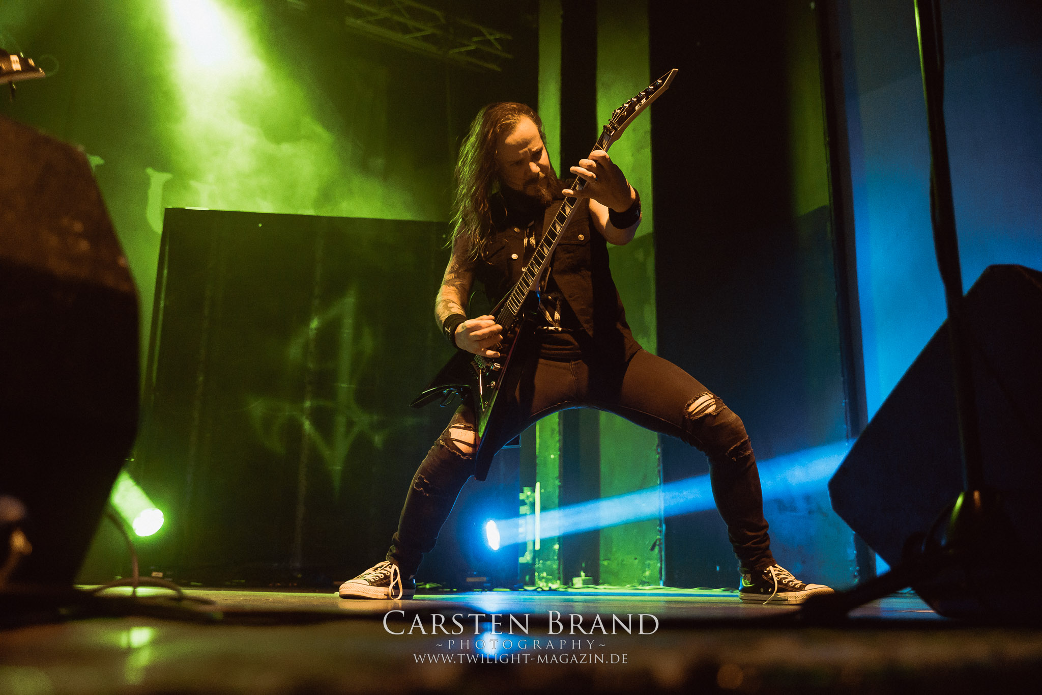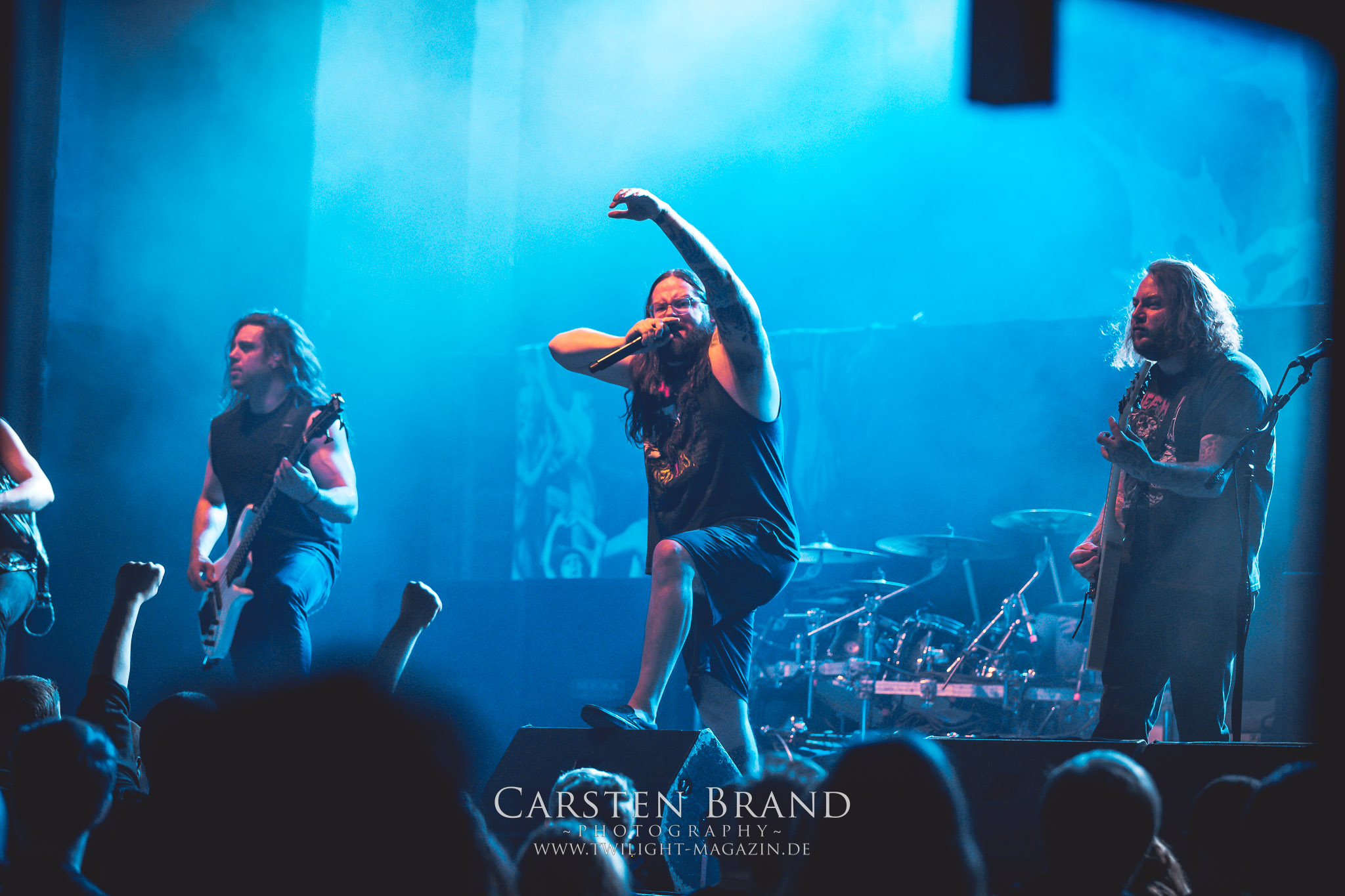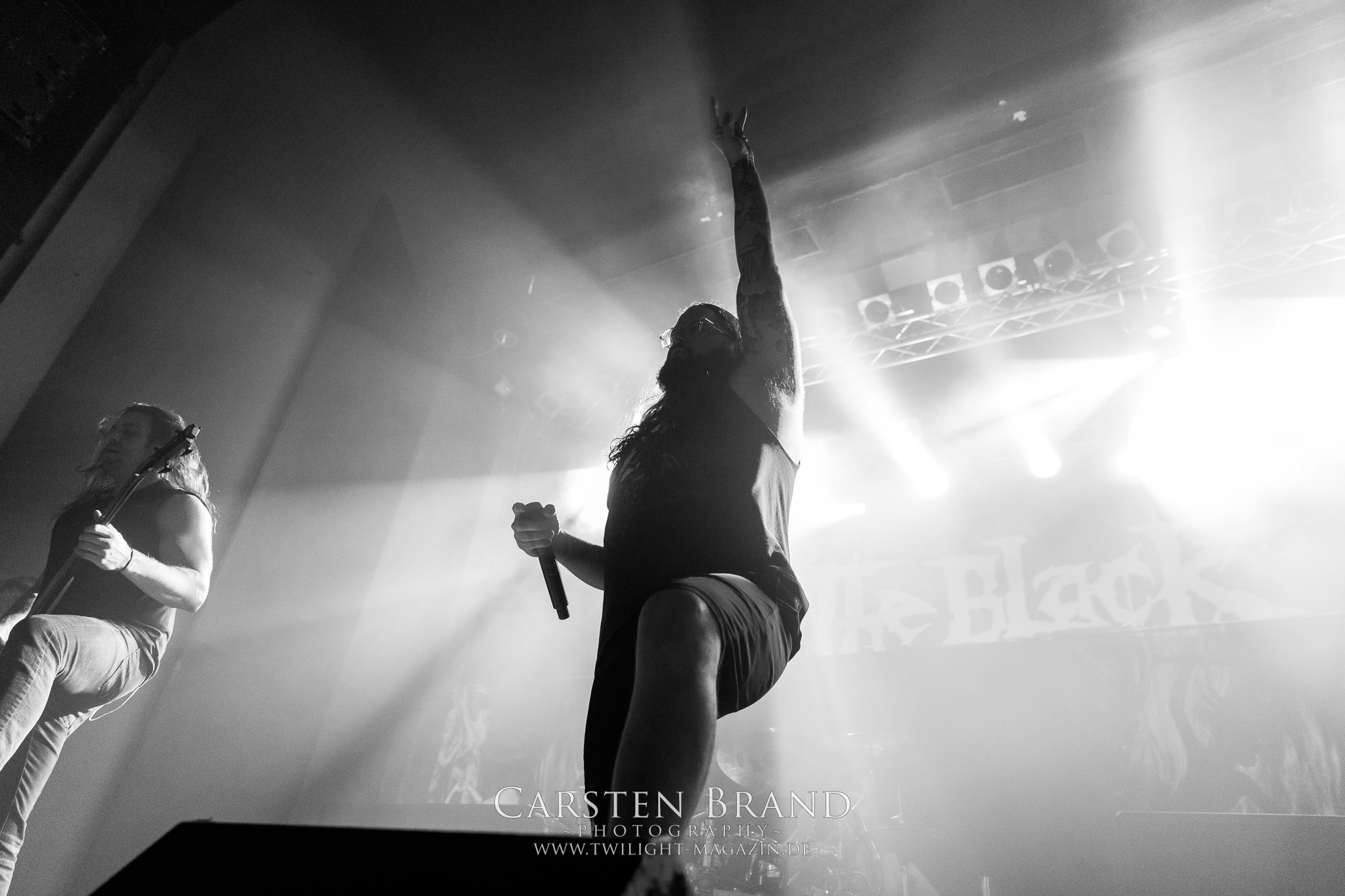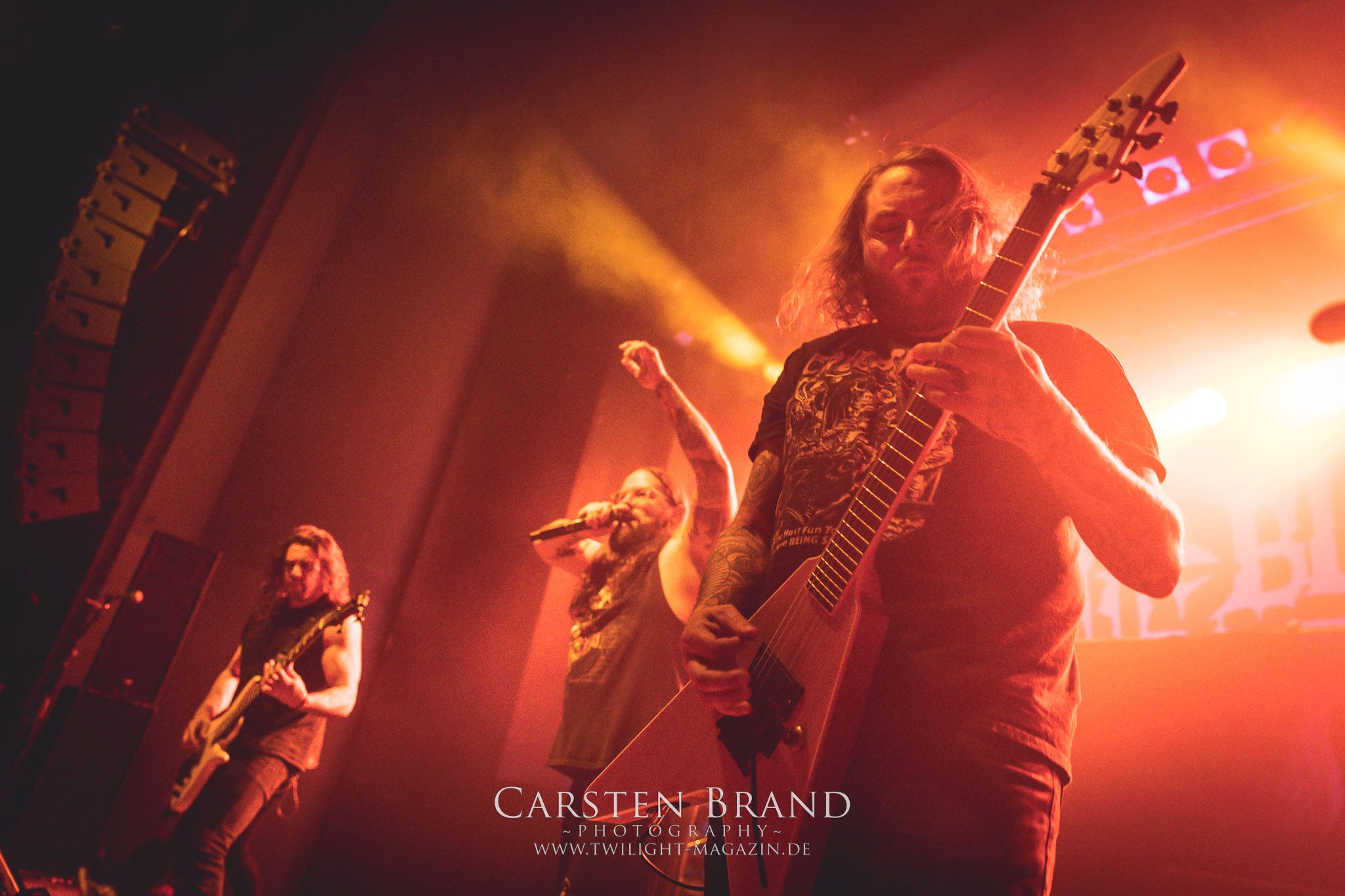 Etwas überpünktlich enterten Stam1na dann auch die Bühne und zeigten einmal mehr, dass sie einfach Bock drauf haben, ihre Mischung aus Thrash und Death Metal ins Publikum zu feuern. Trotz der eingeschränkten Platzverhältnisse auf der Bühne wurde jeder übriggebliebene Quadratmeter für die Showaction genutzt.Nach einer kurzen Umbaupause wurde der Platz auf der Bühne dann auch etwas komfortabler, da man das Drumkit von Stam1na abgebaut hatte und nun der Weg frei war für The Black Dahlia Murder aus Detroit. Eigentlich hätte die Band stilistisch mit ihrem Death Metal gut ins Package gepasst. Aber entweder lag es am Sound oder auch an meiner weitestgehenden Unkenntnis der Songs: Ich hatte den Eindruck dass die Jungs eher in ein Tour-Line up von Bands wie Cannibal Corpse passen würden. Dennoch wurde die Band von den Fans gebührend gefeiert.