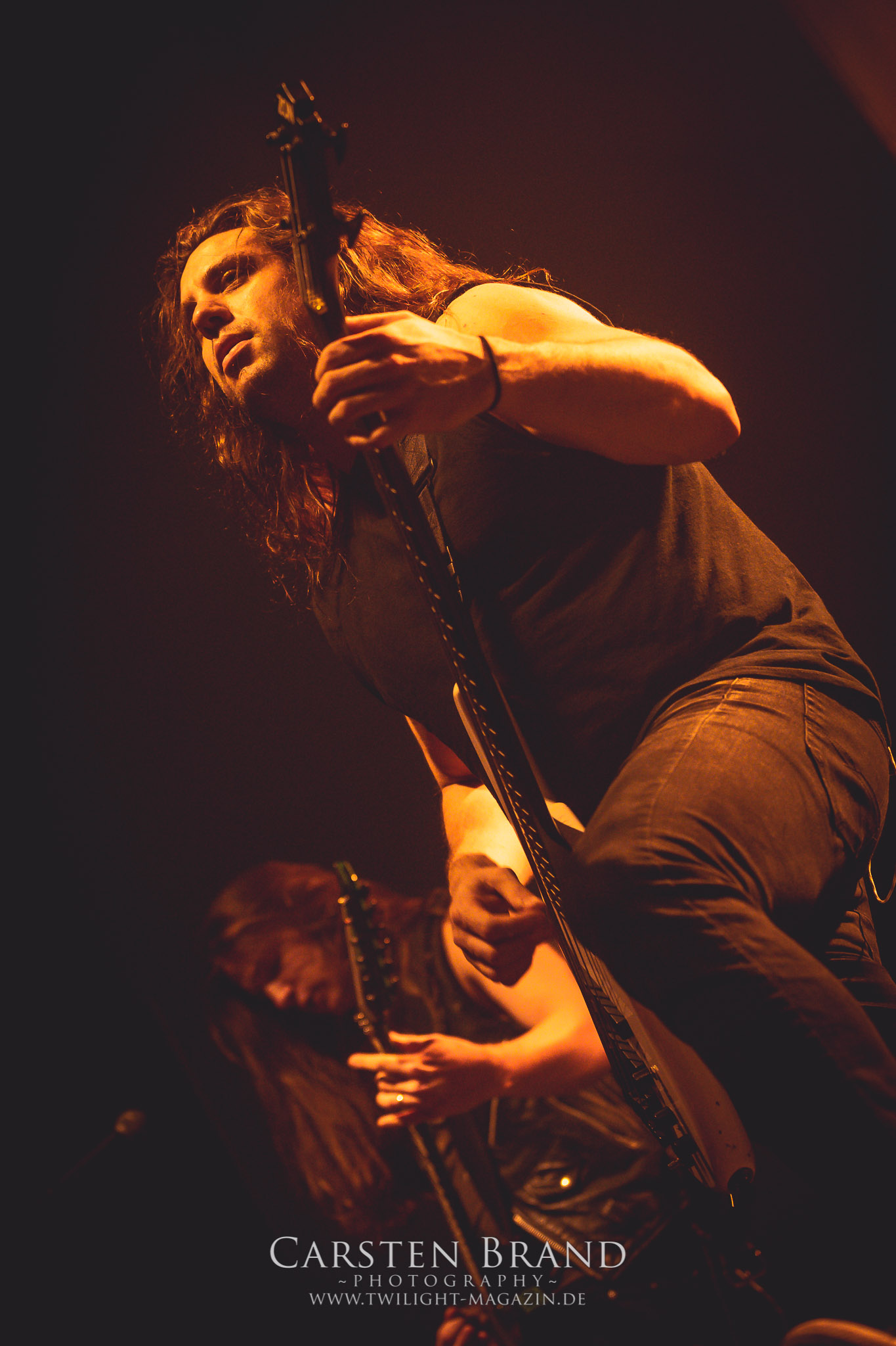 Grave" hintereinander abzufrühstücken. Gefolgt von einem Rückblick auf alte Zeiten mit "Into the Woods" vom Across The Dark-Album.und "Through the Shadows" vom One for Sorrow-Album. Es wäre ja auch langweilig, die Songs in chronologischer Reihenfolge zu spielen, sodass es nun wieder mit "Pale morning Star" in aktuelle Gefilde ging um dann die Zeit ganz weit nach hinten zu drehen, was selbst den eingefleischten Insomnium-Fan verwundert haben dürfte: Vom 2006er Album "Above the Weeping World" gab es mit "Change of Heart" und "In the Groves of Death" zwei Kostproben. Mit "And Bells they toll", "Mute is my Sorrow" und "Ephemeral" endete der offizielle und gefühlt viel zu kurze Teil des Sets. Aber zum Glück kann man sich ja immer noch auf die Zugaben freuen. Und die hatten es insich! Als das Intor zu "The Primeval Dark" erklang, war die Meute aus dem Häuschen! Was für eine Wand als dann die Gitarren einsetzten und Sänger Niilo mit den ersten Worten loslegte. Wie auf der 2014er "Shadows"-Tour folgte danach "While we Sleep". Ein schöner Rückblick auf ein fantastisches Album und eine fantastische Tour.Dass die Finnen immer für einen Spass zu haben sind, sollte sich nun mit einem Akkustik-Medley zeigen. Markus Vanhalla und Jani Liimatainen kamen mit Cowboy-Hüten und ihren Akkustik-Gitarren auf die Bühne, setzten sich auf die Monitorboxen und begannen Interpretationen von "One for Sorrow / Revelation / Heart like a Grave" zu spielen. Immer einen Schluck aus der Bierflasche dazwischen und ein Grinsen