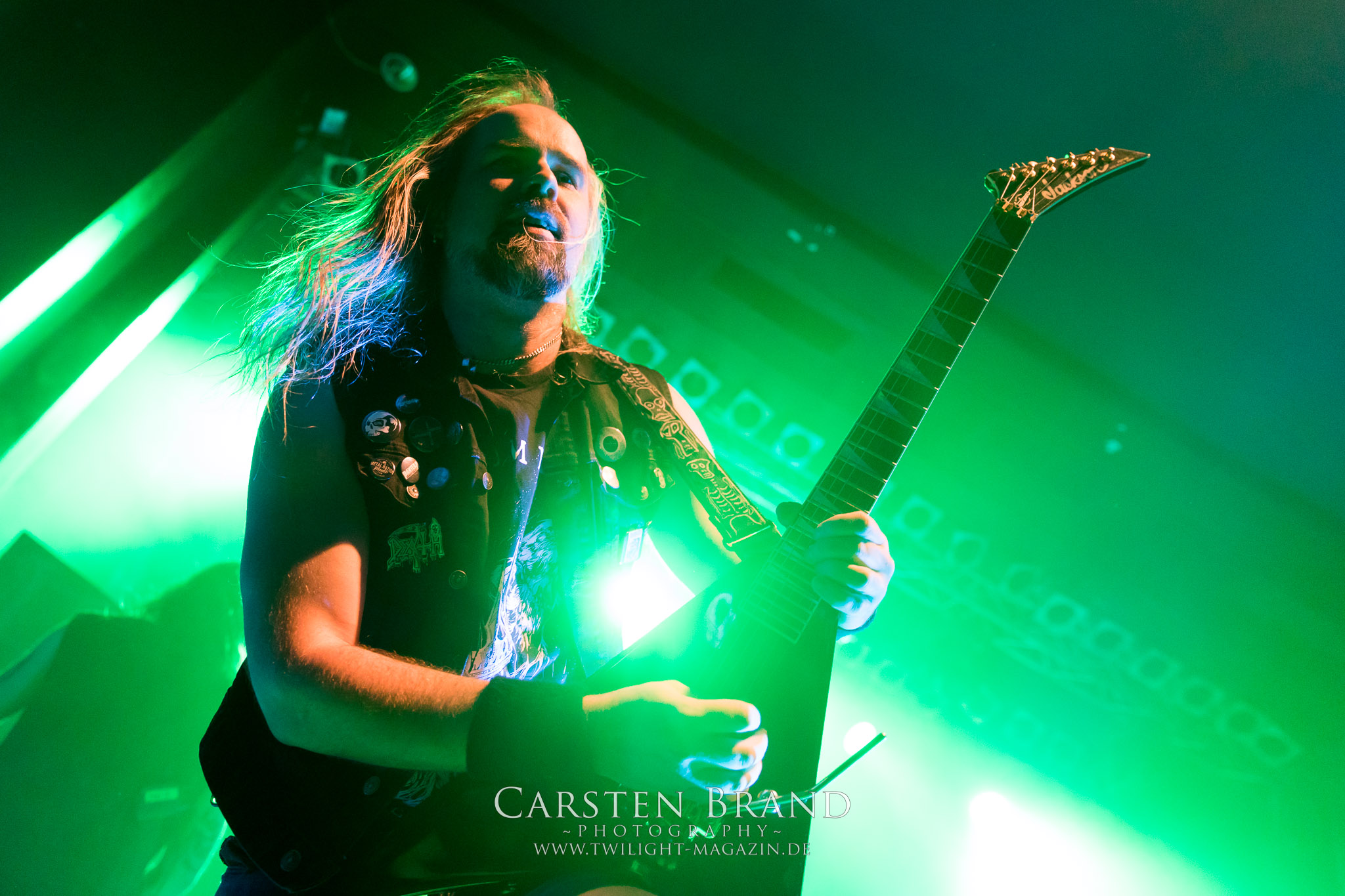 im Gesicht.Jani Liimatainen hat sich inzwischen perfekt ins Bandgeschehen integriert und hat auch die cleanen Gesangsparts von Ville Friman (der ja aufgrund seiner Dozententätigkeit an der Universität von York nicht mehr so viel Zeit zum Touren hat) komplett drauf. Und da das Beste immer zum Schluss kommt, wurde "Heart like a Grave" dann noch in der Vollversion dargeboten.