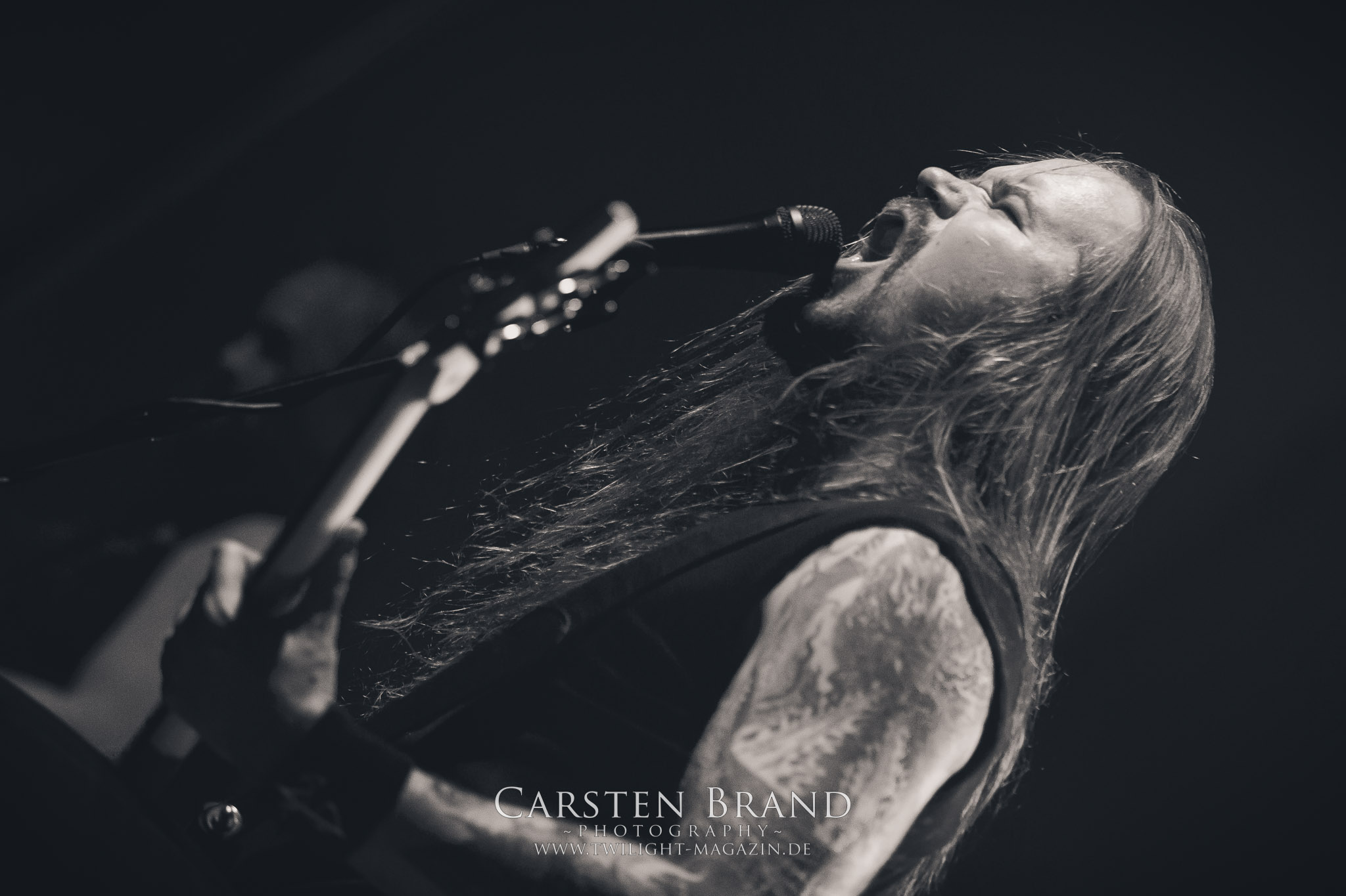 Grave" hintereinander abzufrühstücken. Gefolgt von einem Rückblick auf alte Zeiten mit "Into the Woods" vom Across The Dark-Album.und "Through the Shadows" vom One for Sorrow-Album. Es wäre ja auch langweilig, die Songs in chronologischer Reihenfolge zu spielen, sodass es nun wieder mit "Pale morning Star" in aktuelle Gefilde ging um dann die Zeit ganz weit nach hinten zu drehen, was selbst den eingefleischten Insomnium-Fan verwundert haben dürfte: Vom 2006er Album "Above the Weeping World" gab es mit "Change of Heart" und "In the Groves of Death" zwei Kostproben. Mit "And Bells they toll", "Mute is my Sorrow" und "Ephemeral" endete der offizielle und gefühlt viel zu kurze Teil des Sets. Aber zum Glück kann man sich ja immer noch auf die Zugaben freuen. Und die hatten es insich! Als das Intor zu "The Primeval Dark" erklang, war die Meute aus dem Häuschen! Was für eine Wand als dann die Gitarren einsetzten und Sänger Niilo mit den ersten Worten loslegte. Wie auf der 2014er "Shadows"-Tour folgte danach "While we Sleep". Ein schöner Rückblick auf ein fantastisches Album und eine fantastische Tour.