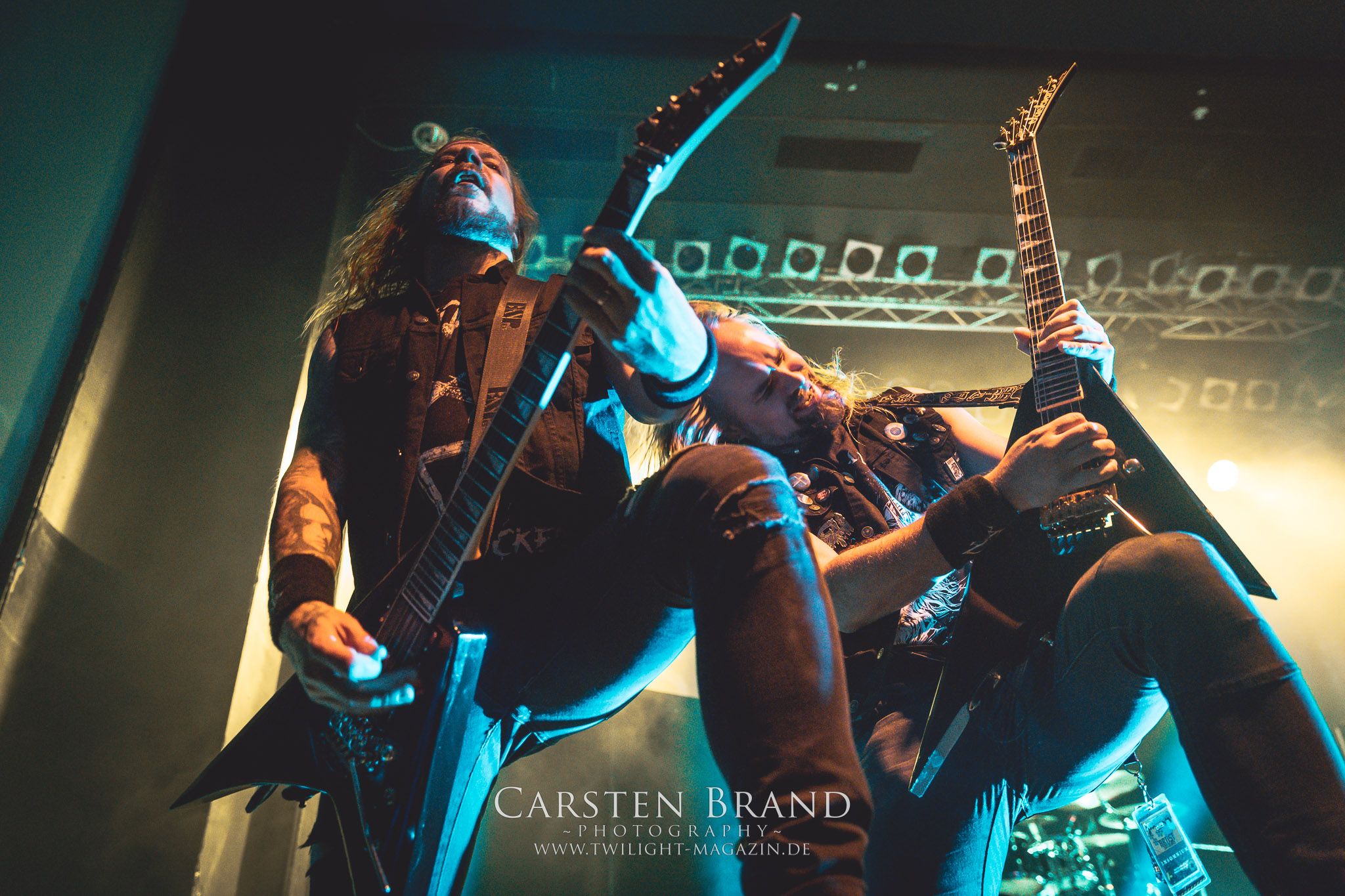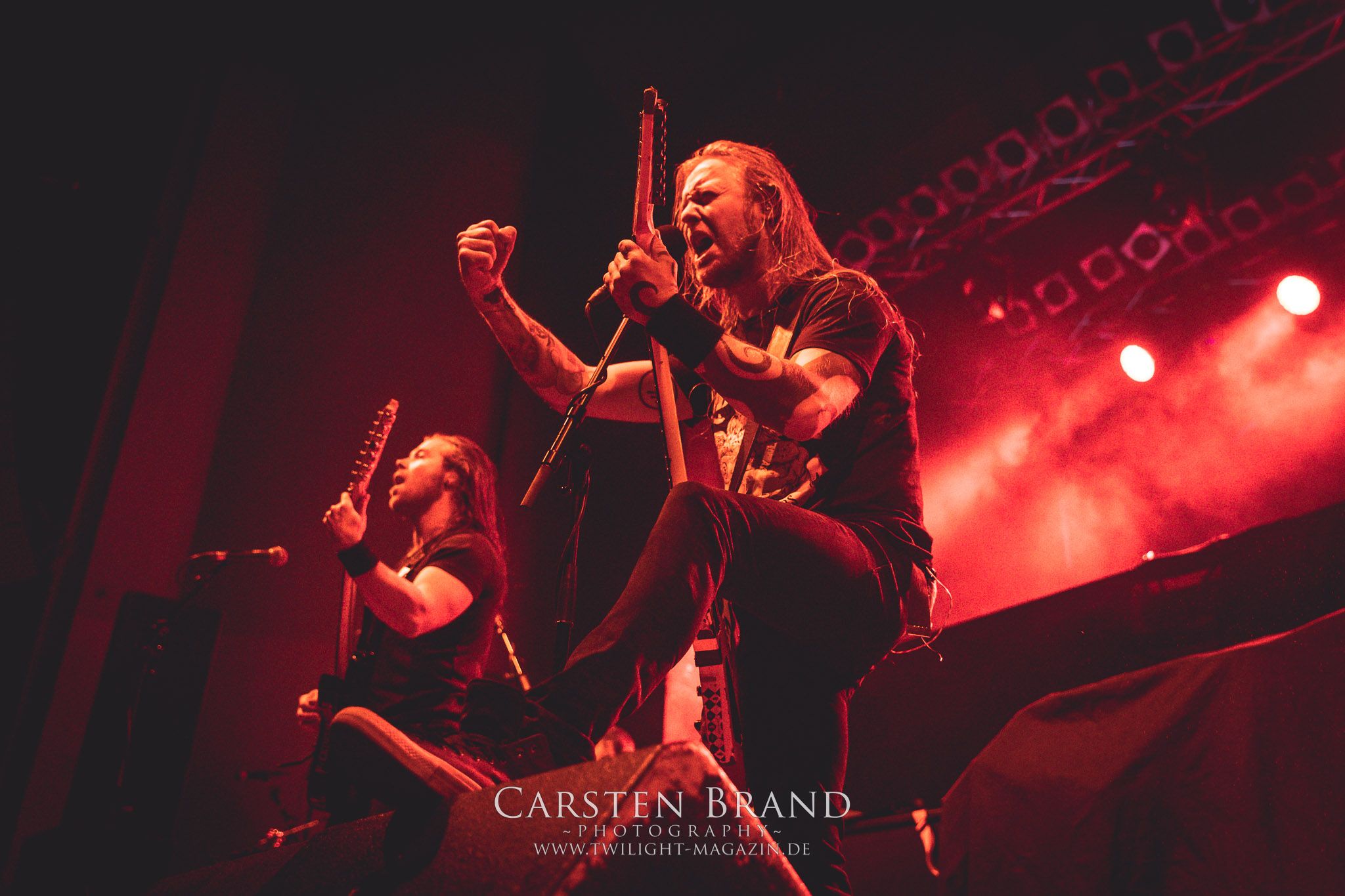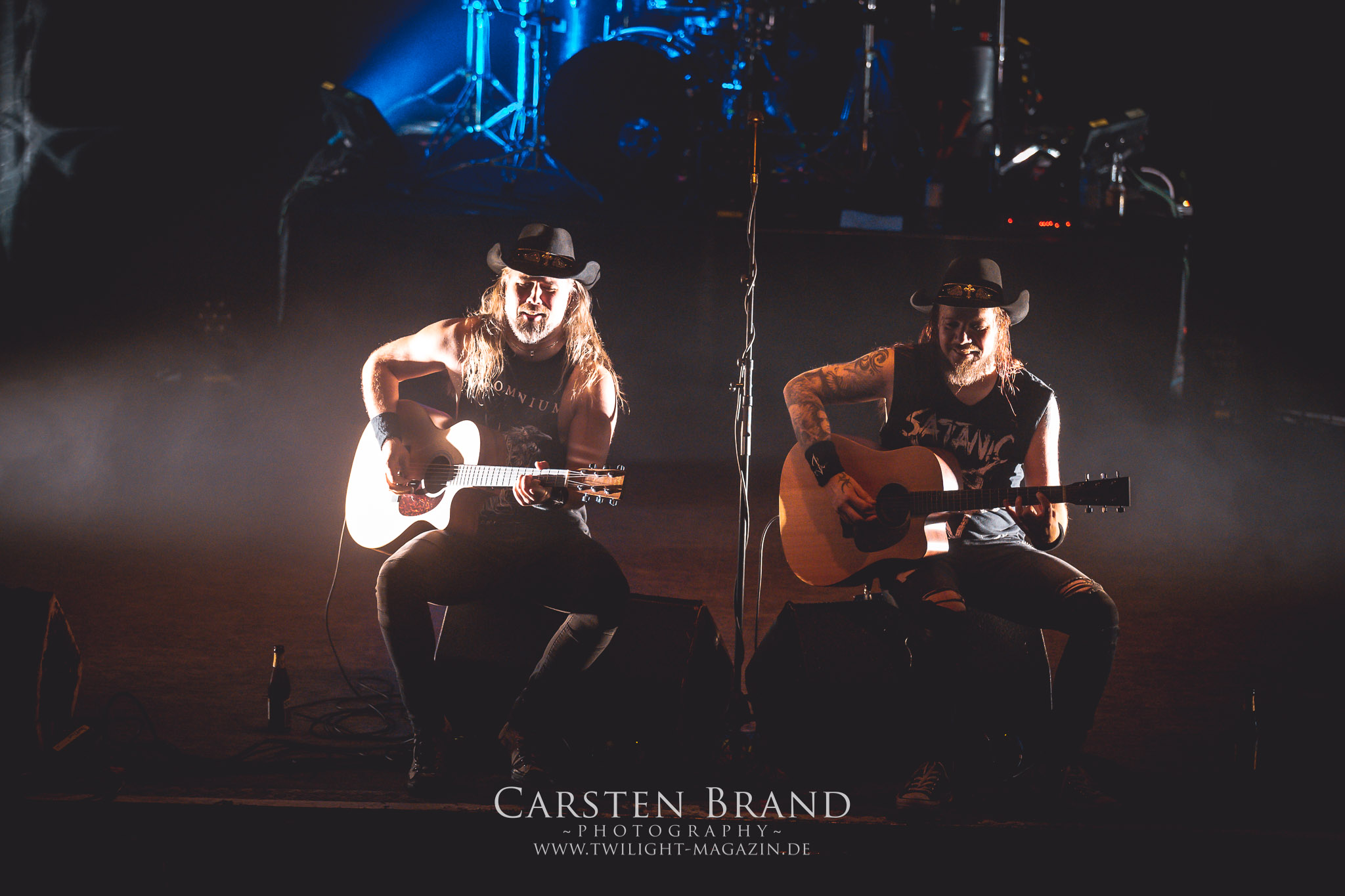 Dass die Finnen immer für einen Spass zu haben sind, sollte sich nun mit einem Akkustik-Medley zeigen. Markus Vanhalla und Jani Liimatainen kamen mit Cowboy-Hüten und ihren Akkustik-Gitarren auf die Bühne, setzten sich auf die Monitorboxen und begannen Interpretationen von "One for Sorrow / Revelation / Heart like a Grave" zu spielen. Immer einen Schluck aus der Bierflasche dazwischen und ein Grinsen