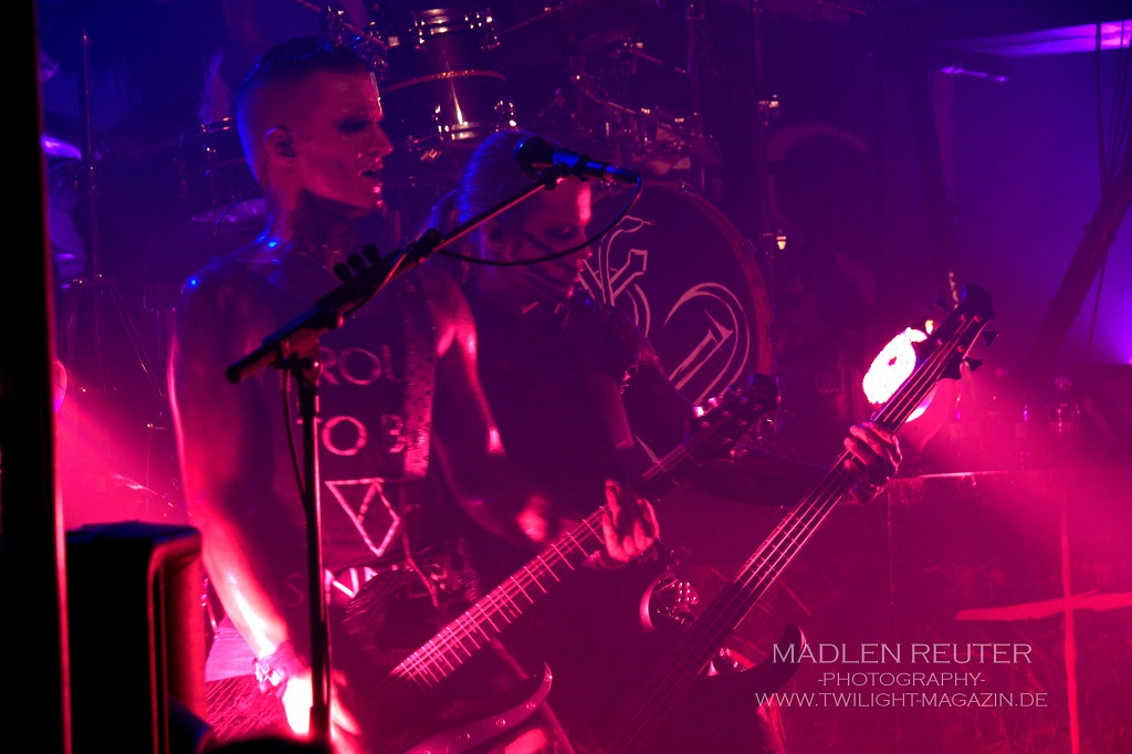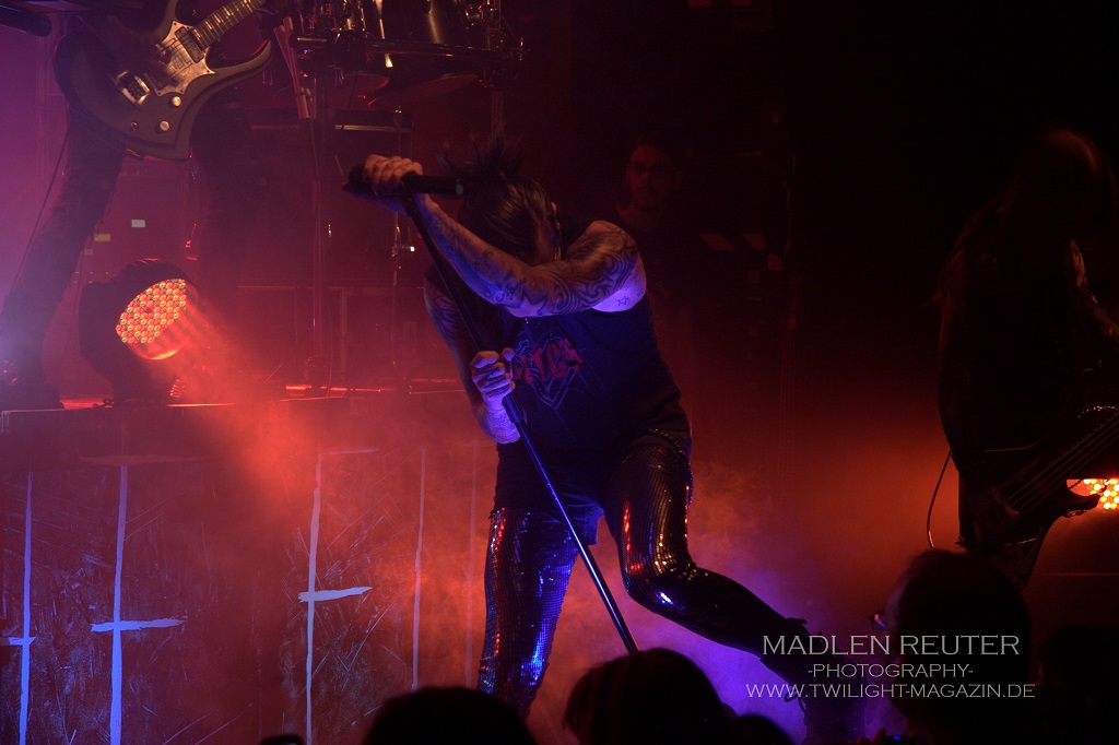 Auch der Gitarrist ist sehr posingfreundlich gewesen und hat das ein oder andere Tänzchen hingelegt. Neben dem rhythmischen Haargeschwinge hat er, durch Animation seines Frontmannes, einige elegante Sprünge zum Besten gegeben. Allerdings konnte er mit den Sprungfedern in Erc’s Stiefeln nicht mithalten.