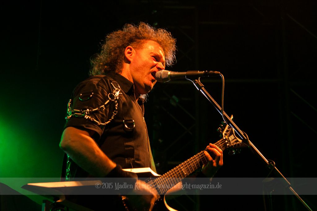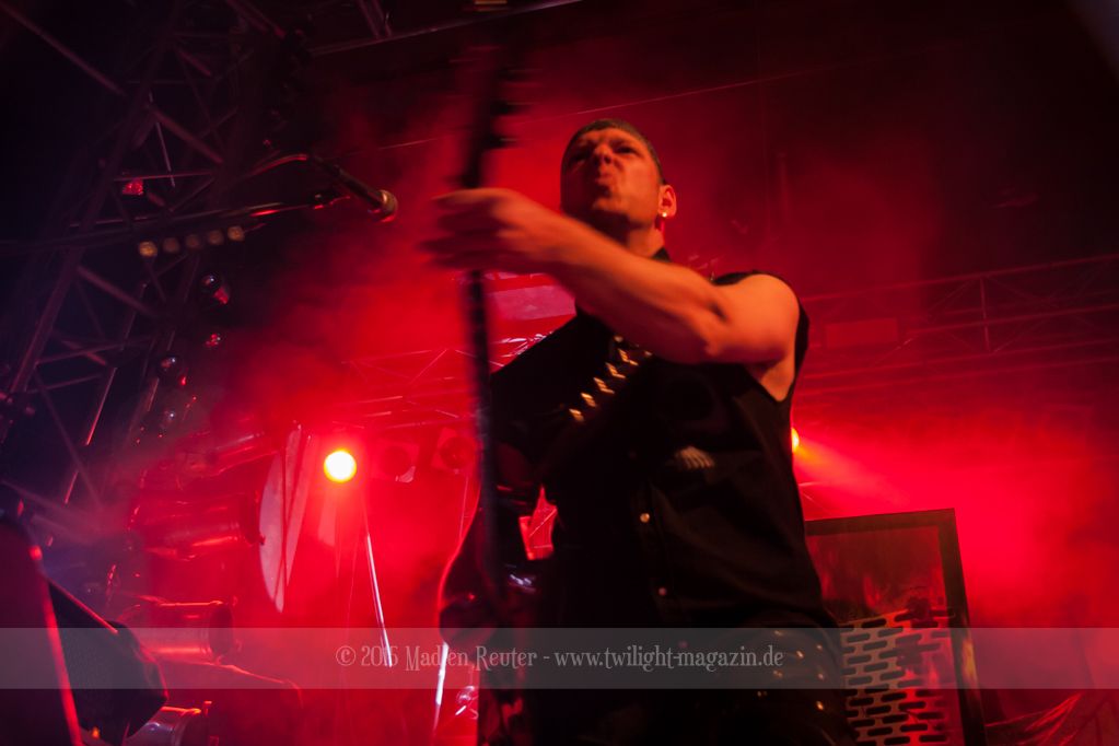 Zum Aufwärmen brauchte es da nur den richtigen Supportact. Zum Glück hatten die Finnen hierfür die Rheinländer von PALACE mit dabei. ACCEPT küsst RUNNING WILD, so würde ich die Band kurz beschreiben. Schon seit über 30 Jahren im Geschäft, wissen die Herren wo der Frosch die Locken hat und gingen dementsprechend in die Vollen. Bei diesem Hard Rock blieb kaum noch jemand unberührt und mehr Leute begaben sich vor die Bühne. Spitzenmäßiger Sound, geile Songs und sehr solide Performance – rundum ein sehr gelungener Auftritt. Und auch ein würdiges Abschlusskonzert (für sie war es die letze Show auf dieser Tour) für die Vier. Auch um Interaktion mit den Leuten waren die Urgesteine sehr bemüht und auf diese wurde auch dankend eingegangen. Ein einziges Problem bestand darin, dass der übereifrige Gitarrist ein Drum-Mikro umgehauen hatte und dadurch kurzzeitig Soundprobleme auftraten. Die wurden allerdings flott behoben und schon konnte ordentlich weitergerockt werden. PALACE haben fleißig bei dem Publikum gepunktet und haben die Meute für die Monster auch dementsprechend aufgewärmt.
