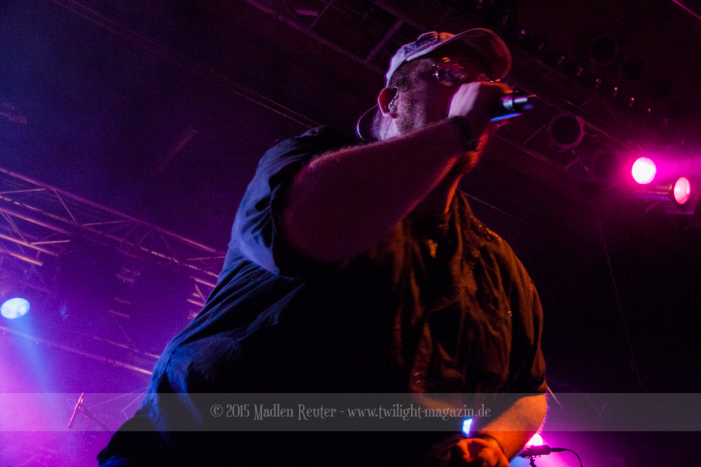 Bereits zwei Stunden vor Einlass habe ich mich vor der Halle eingefunden. Zu meiner großen Überraschung war noch niemand dort. Aber hey, so hatte ich wenigstens genug Platz, um vor meiner Nervosität wegzulaufen. Gratis dazu gab es dann auch noch einen ziemlich spaßigen Soundcheck mit anzuhören. „Scare Force One“ in Gepfiffen ist durchaus sehr interessant. Nach und nach hatte sich dann eine kleine Schlange gebildet. Nach Einlass bin ich dann direkt zur rechten Seite der Bühne geflitzt und habe mich vor Gitarrist Amen und Keyboarderin Hella niedergelassen. Diese Barrikaden sind echt ziemlich hoch.. Oh, Moment, ich bin einfach nur extrem klein, da war ja was. Wie dem auch sei, danach gings erst mal zum Merch-Stand. Immerhin brauchte ich ja noch ein paar mehr T-Shirts. Ein paar lockere Pläuschchen später ging es dann auch schon mit der ersten Vorband los.