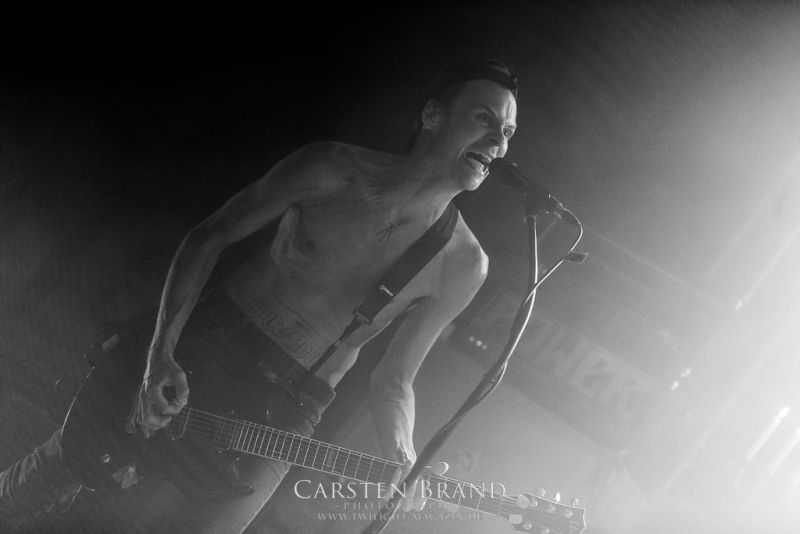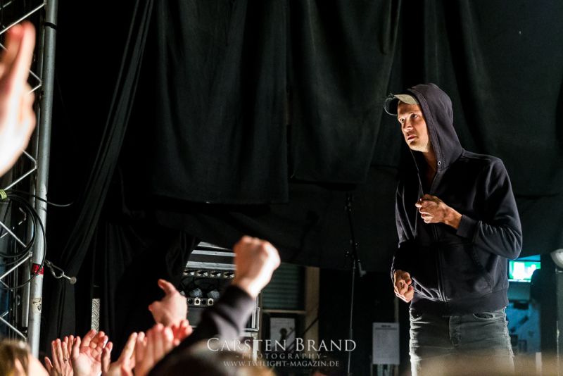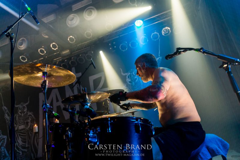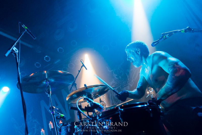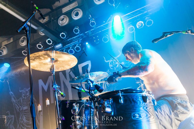 MANTAR hingegen stehen als Headliner nicht nur stilistisch komplett für sich selbst. Hanno und Erinc haben mit ihrem dritten Album "The Modern Art Of Setting Ablaze" noch einmal einen gewaltigen Schritt nach vorn machen können und den ohnehin schon einzigartigen Stil aus (Black)Metal, Stoner Rock, Punk/Crust und Noise weiter verfeinert. Und das zieht an. Zwar ist das Musikzentrum nicht ausverkauft aber rappelvoll und das an einem Montag Abend. Vor der Bühne ist kaum noch ein Durchkommen, als Mantar loslegen. Die selbsternannten Langzeitarbeitslosen haben es eigentlich nicht nötig, ihr Publikum mit Whisky zu bestechen. Trotzdem nimmt Hannover die Verkostung dankend an, während das Duo, das sich auf der Bühne wie gewohnt gegenüber steht, mit "Age Of The Absurd", "Seek + Forget", "Dynasty Of Nails", "Teeth Of The Sea" oder "Midgard Serpent" u. a. die eigentlichen Argumente liefert, die Halle in Schutt und Asche zu legen. Natürlich liegt auch hier der Schwerpunkt auf dem Material vom aktuellen Album obwohl natürlich auch die Gassenhauer der ersten beiden Scheiben nicht zu kurz kommen und sogar erfreulich viel vom Debut gespielt wird. Es dauert nicht lang bis die ersten Diver über das Publikum schweben, wobei Hanno die Crowd explizit dazu animiert, den Surfern das Erlebnis so nachhaltig wie möglich zu machen. "Era Borealis" leutet das Finale ein, das von "White Nights" und "Beserkers Path" gekrönt wird. Zugaben gibt´s nicht bei einem starken Gig, obwohl ich auch Mantar schon wesentlich intensiver gesehen oder erlebt habe.