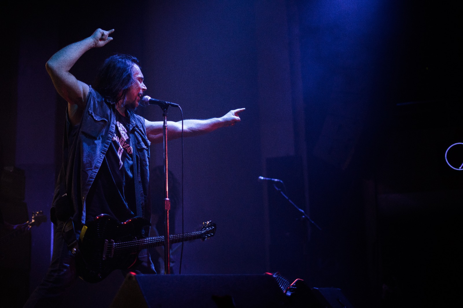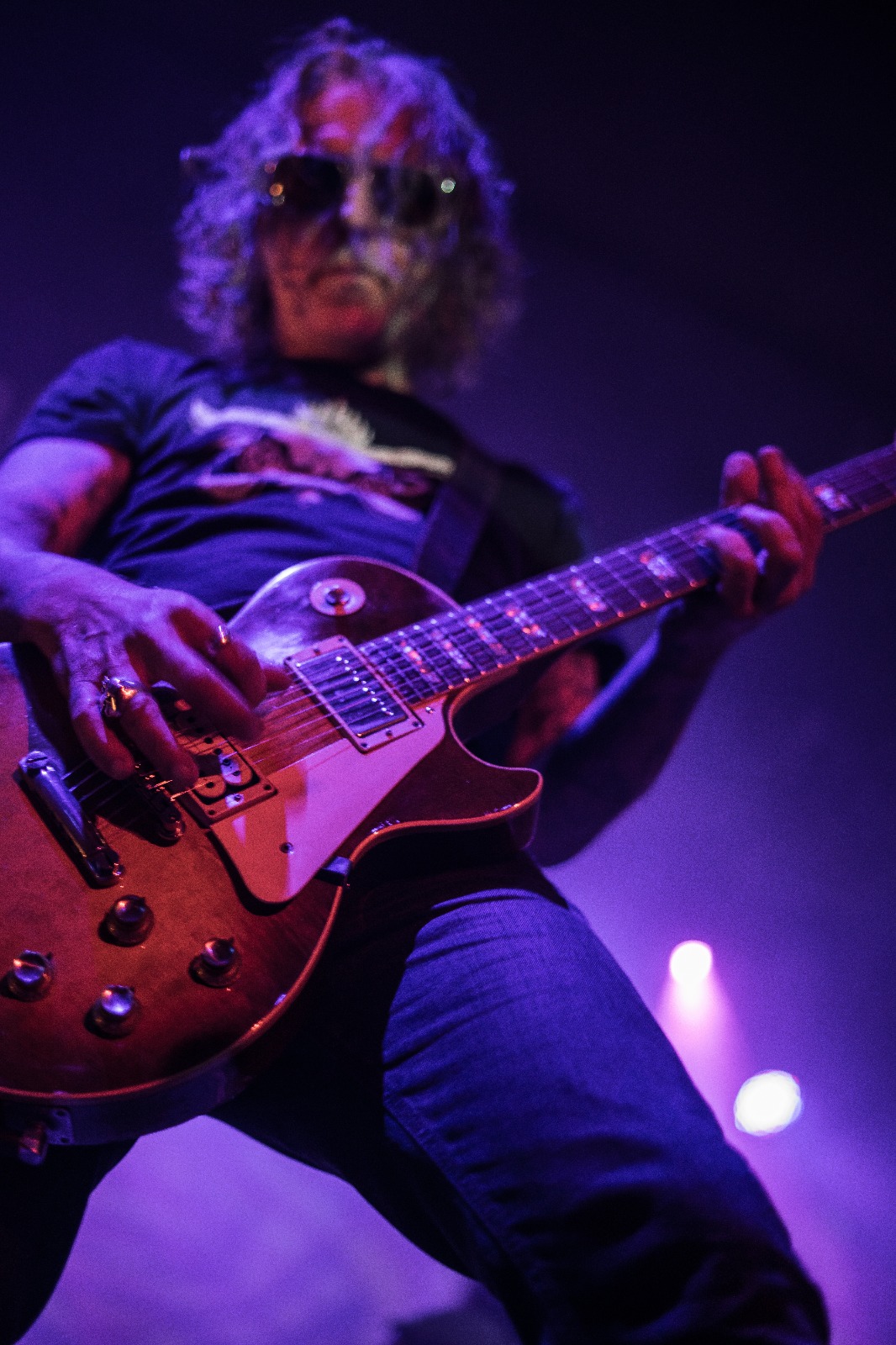 Punkt 21 Uhr war das Capitol dann gut voll und MONSTER MAGNET eröffneten ihre imposante Spracerock Show mit „Dopes To Infinity“. Der langsame, schleppende Groove baute langsam Spannung auf und schließlich eröffnete Dave Wyndorf den Gottesdienst zu Ehren ihrer Spacelordschaft, indem er voller Pathos sang und von der ersten Sekunde das Publikum fesselte. Es folgten im Laufe des Abends vor allem Klassiker der superaußerirdischen Spacelords. Der charismatische Wyndorf verbreitete durch Gestik und Gesang für seine amtlichen 61 Jahre unbeschreiblich viel Energie, Leben und Leidenschaft im Saal. Schnell stellte sich schnell ein gewisser Zustand der Trance ein, der durch eine psychodelische Licht -und Leinwandshow unterstützt wurde. Höhepunkt der Show war zugleich der letzte Song des regulären Sets „Space Lord“. Angestachelt durch den Hohepriester der psychodelischen Gitarrenkunst sang die gesamte Gemeinde den Refrain „Space Lord MOTHER FUCKER!“ voller Inbrunst. Doch dann: Licht aus und die dröhnenden Gitarren vor die Amps gestellt.
