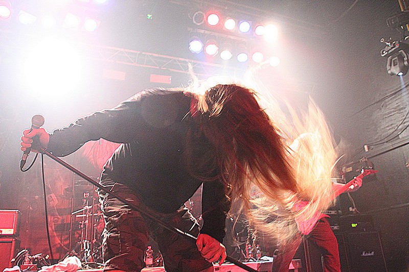 Denn wenn Gitarrist Trevor Peres und Schreihals John Tardy loslegen, ist außer wallenden Haaren nicht mehr viel auf der Bühne zu sehen. Nach wie vor sind OBITUARY der lebende Beweis, dass es für zermalmende Todesriffs mit Abrissbirnencharakter keine 7saiter oder gar 8saiter braucht, sondern nur die richtigen Ideen. Auch 30 Jahre nach ihrer Gründung bleiben OBITUARY, trotz nicht gerade idealem Sound an diesem Abend, das Aushängeschild in Sachen Brutalität im Bereich des Todesmetals. Nun könnte man sich natürlich wieder lang und breit über die Setlist des Abends auslassen, ich habe z.B. schmerzlich „The End Complete“ vermisst, aber letztlich haben die Death Metal Rednecks ja gar keine schlechten Songs. Und mit ihrer Mischung aus allen Phasen ihres bisherigen Schaffens dürften die Tardys & Co doch für jeden anwesenden Fan etwas im Gepäck gehabt haben. Fazit: Zwar kommt Frontmann John mittlerweile auch schon mal etwas aus der Puste, doch am Ende liefern OBITUARY immer noch das ab, was man von ihnen erwartet: brutalen Death Metal der alten Schule, der alles zermalmt, was sich im ihn den Weg stellt.
