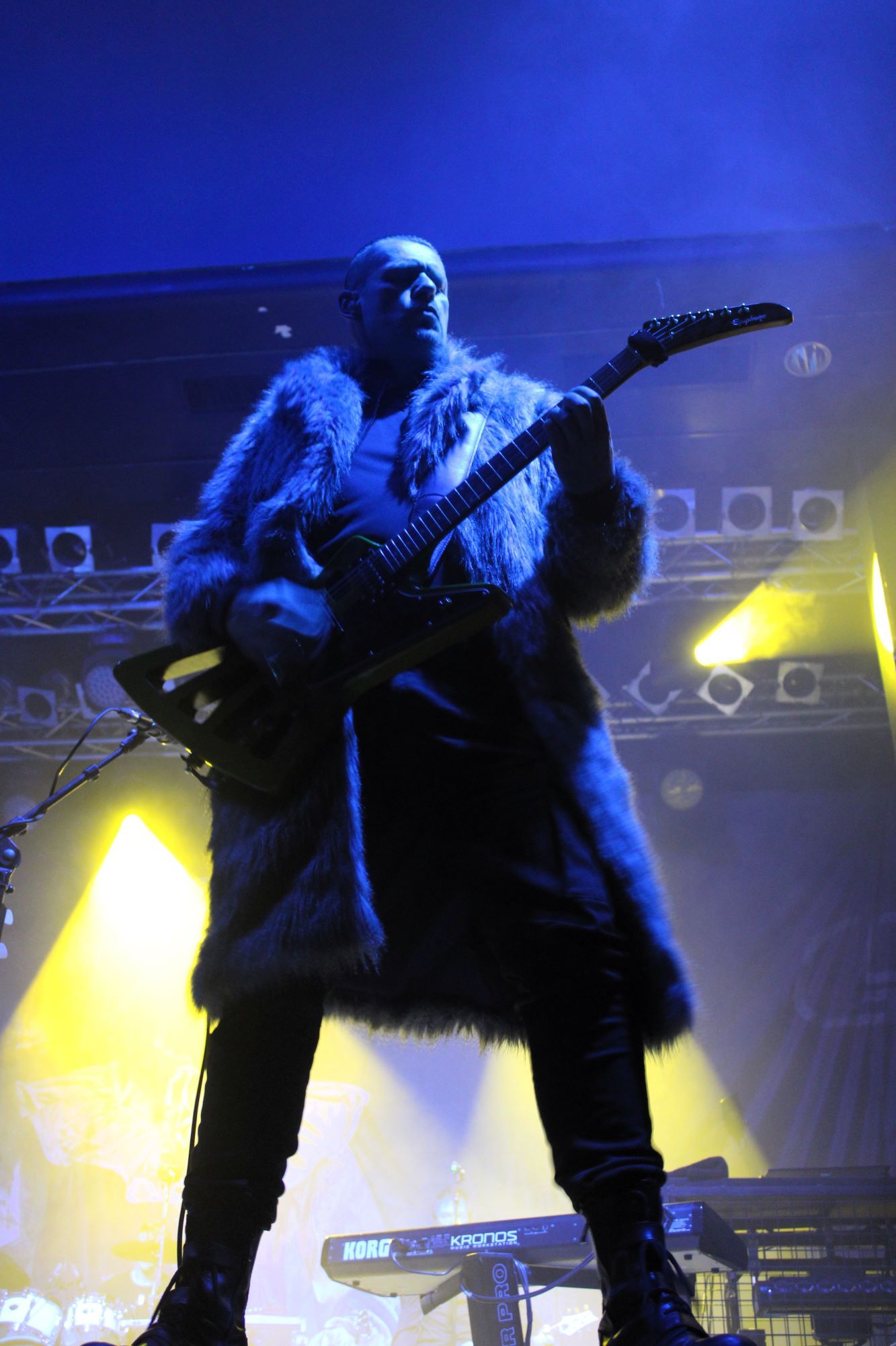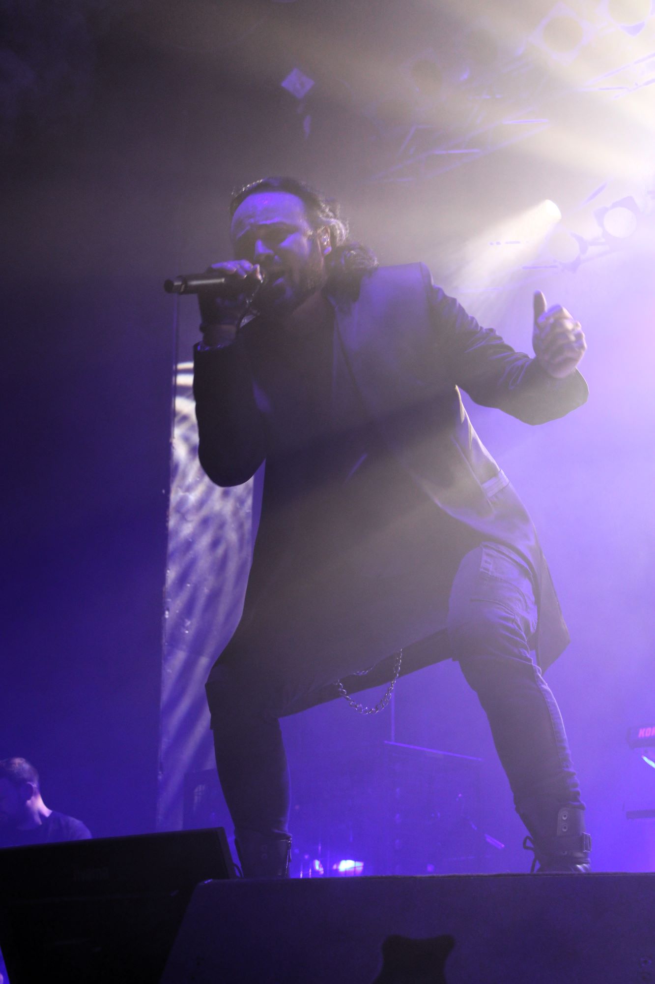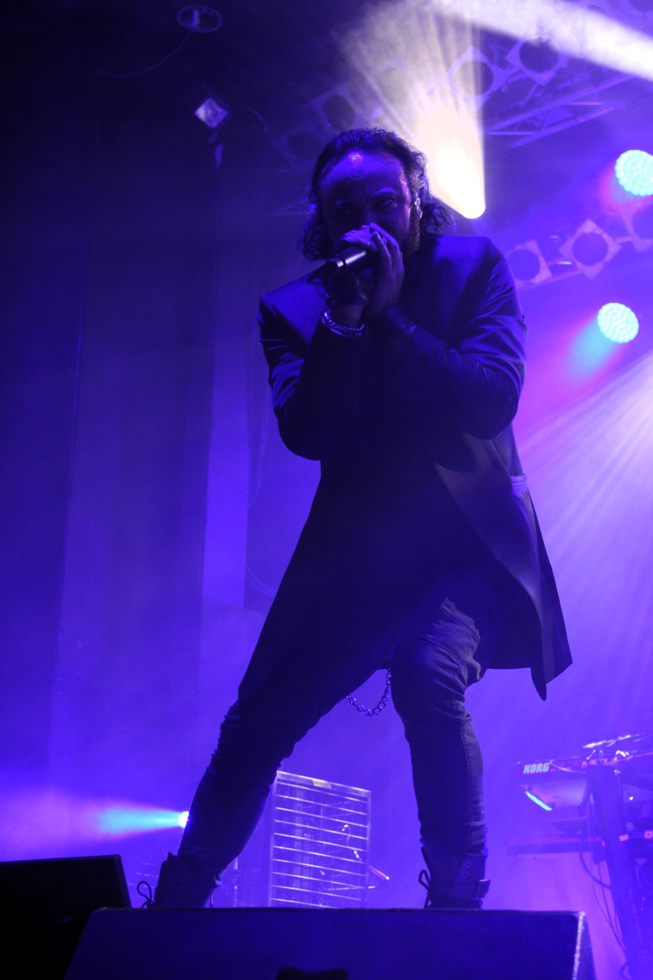 Der zweite Song war dann schon der erste Klassiker. Mit “Träumst du” wurden dann sämtliche Restzweifel, wenn es sie denn gegeben hat, ausgeräumt. Der Song sollte auch nicht der einzige Klassiker bleiben. “Labyrinth”, “Gott ist ein Popstar”, “Das weiße Licht” und “Der neue Gott” durften natürlich auch nicht fehlen. Erweitert wurde das Programm durch zum Teil sehr alte Songs aus dem Frühwerk von Oomph! (“Mein Herz”, “Mitten ins Herz”) und natürlich durch die Songs vom neuen Album.