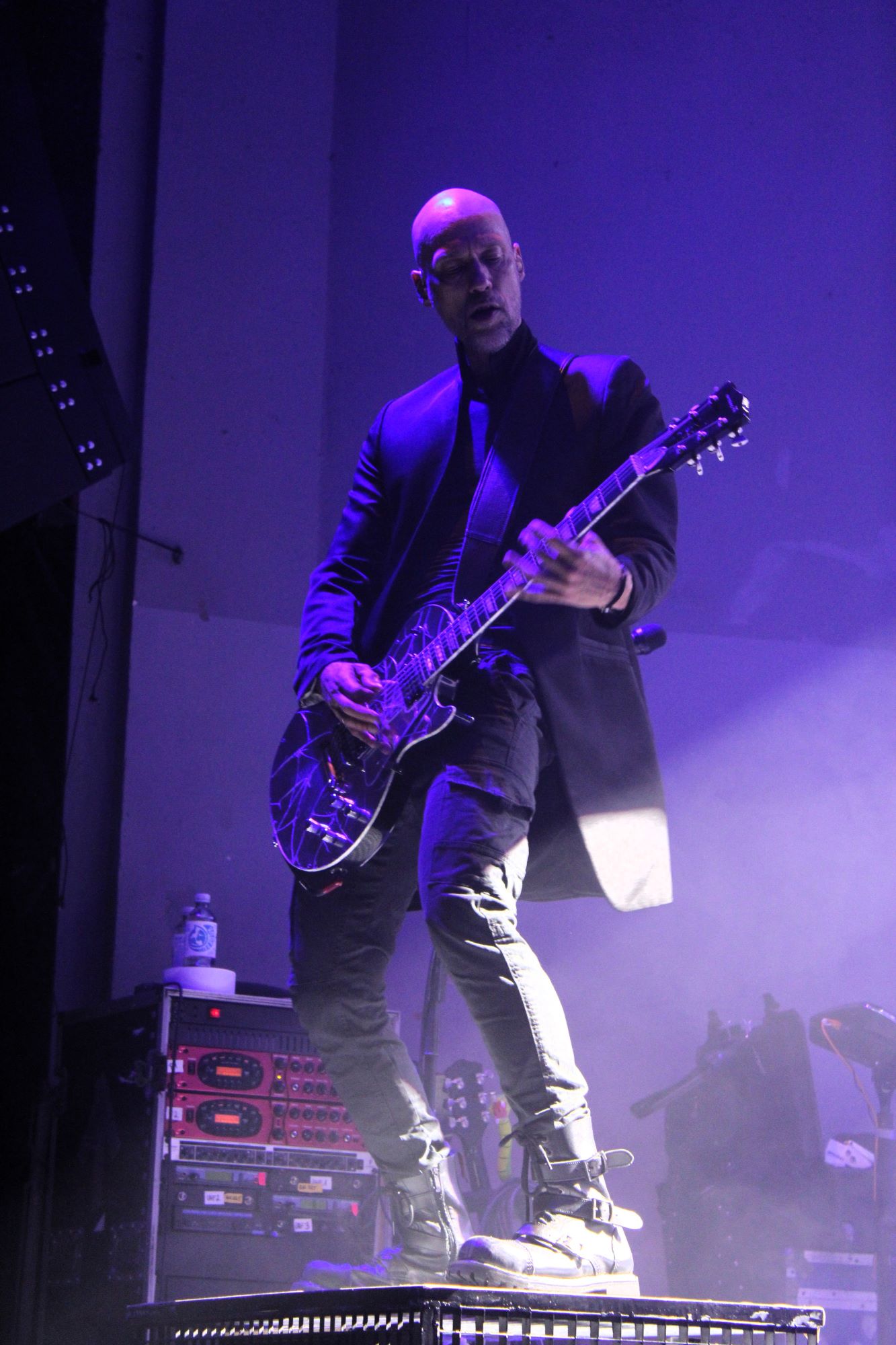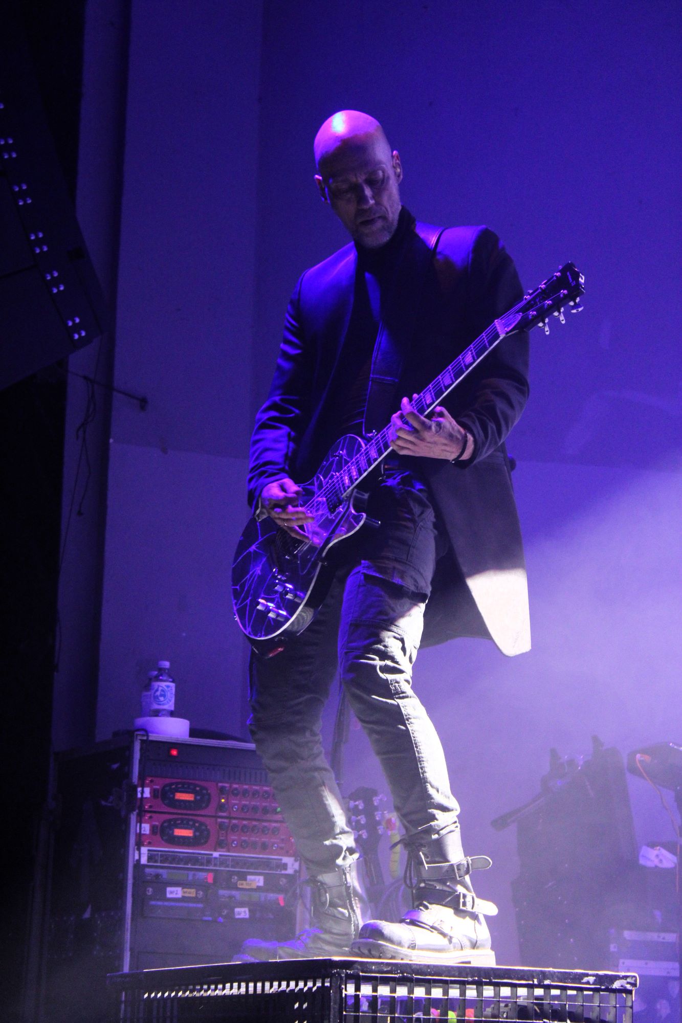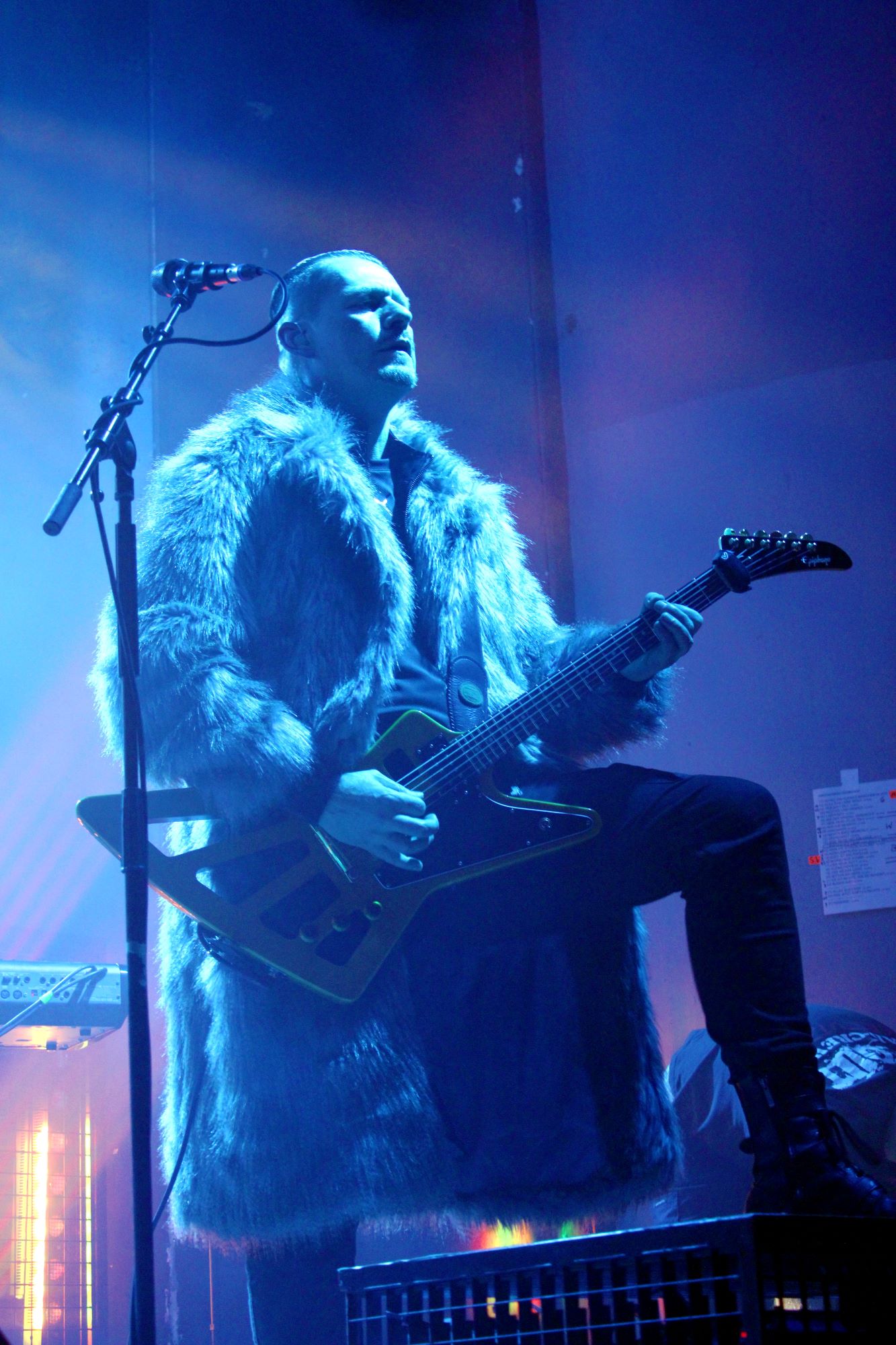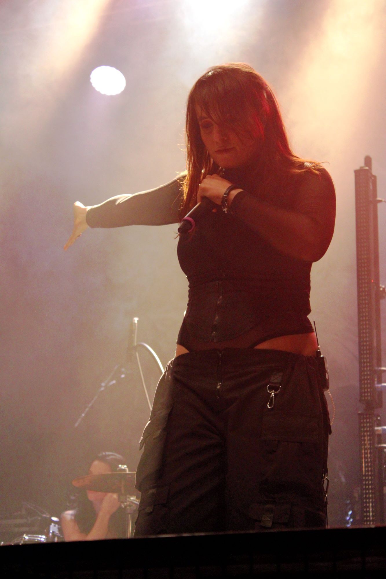 Der zweite Song war dann schon der erste Klassiker. Mit “Träumst du” wurden dann sämtliche Restzweifel, wenn es sie denn gegeben hat, ausgeräumt. Der Song sollte auch nicht der einzige Klassiker bleiben. “Labyrinth”, “Gott ist ein Popstar”, “Das weiße Licht” und “Der neue Gott” durften natürlich auch nicht fehlen. Erweitert wurde das Programm durch zum Teil sehr alte Songs aus dem Frühwerk von Oomph! (“Mein Herz”, “Mitten ins Herz”) und natürlich durch die Songs vom neuen Album.