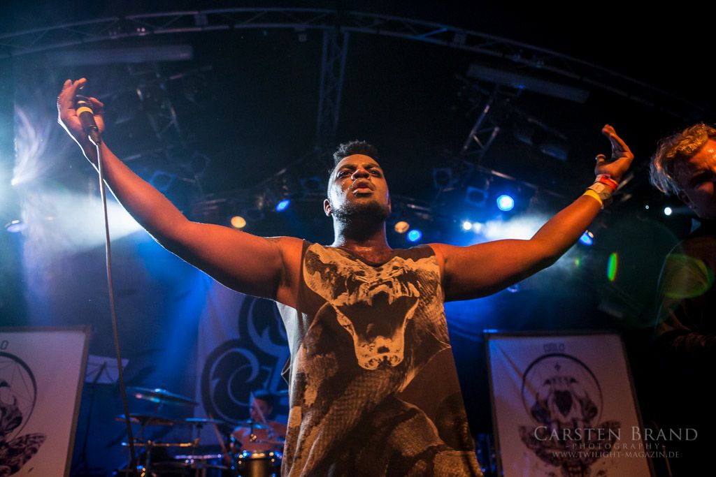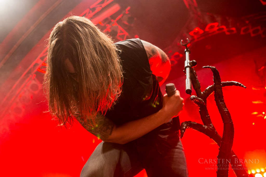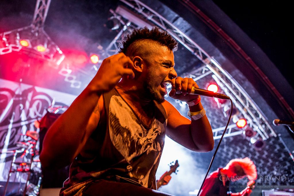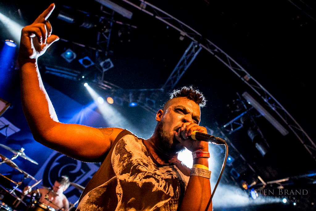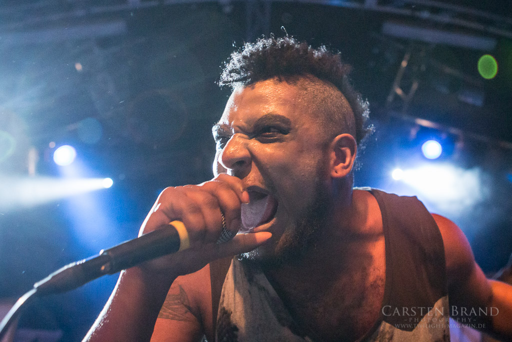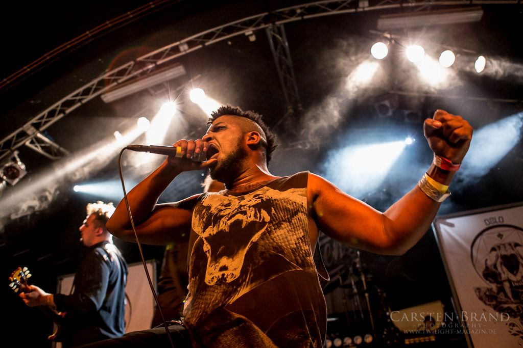OSLO FAENSKAP haben die Aufgabe, die Besucher in der Markthalle aufzuheizen. Wobei die Temperaturen schon weit über gemütlich liegen. Eine Mischung aus Metalcore, harten Riffs und gekonnten Break Downs überzeugt nicht jeden in der Halle, die ersten machen sich jedoch fleißig vor der Bühne warm. Besonders Lars am Gesang überzeugt mit einer unheimlichen Bühnenperformance und es scheint, als würde er nach Sprüngen und zurückgelegten Bühnenmetern bezahlt.