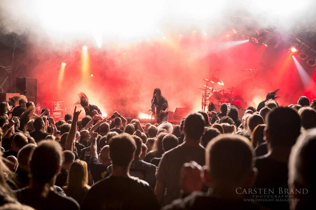 Nach kurzer Umbaupause geht es mit VREDEHAMMER weiter. Ähnlich wie bei Satyr und Frost agiert auch hier ein Duo und wird durch Session Musiker verstärkt. VREDEHAMMER überzeugen durch ihren ganz eigenen Stil, wenngleich sie sich dem traditionellen norwegischen Black Metal zuordnen lassen. Ein unermüdliches Schlagwerk gibt die Marschrichtung vor, filigrane Gitarren fräsen den Weg frei und der Gesang marschiert munter voraus und schafft die gewohnte frostige Atmosphäre. Im Publikum werden fleißig Haare geschüttelt und die Meute mag sich kaum satt sehen. So gibt es zwei Zugaben, und zur Überraschung noch ein weiteren Titel obendrauf, da offenbar noch Zeit vom Slot übrig war.