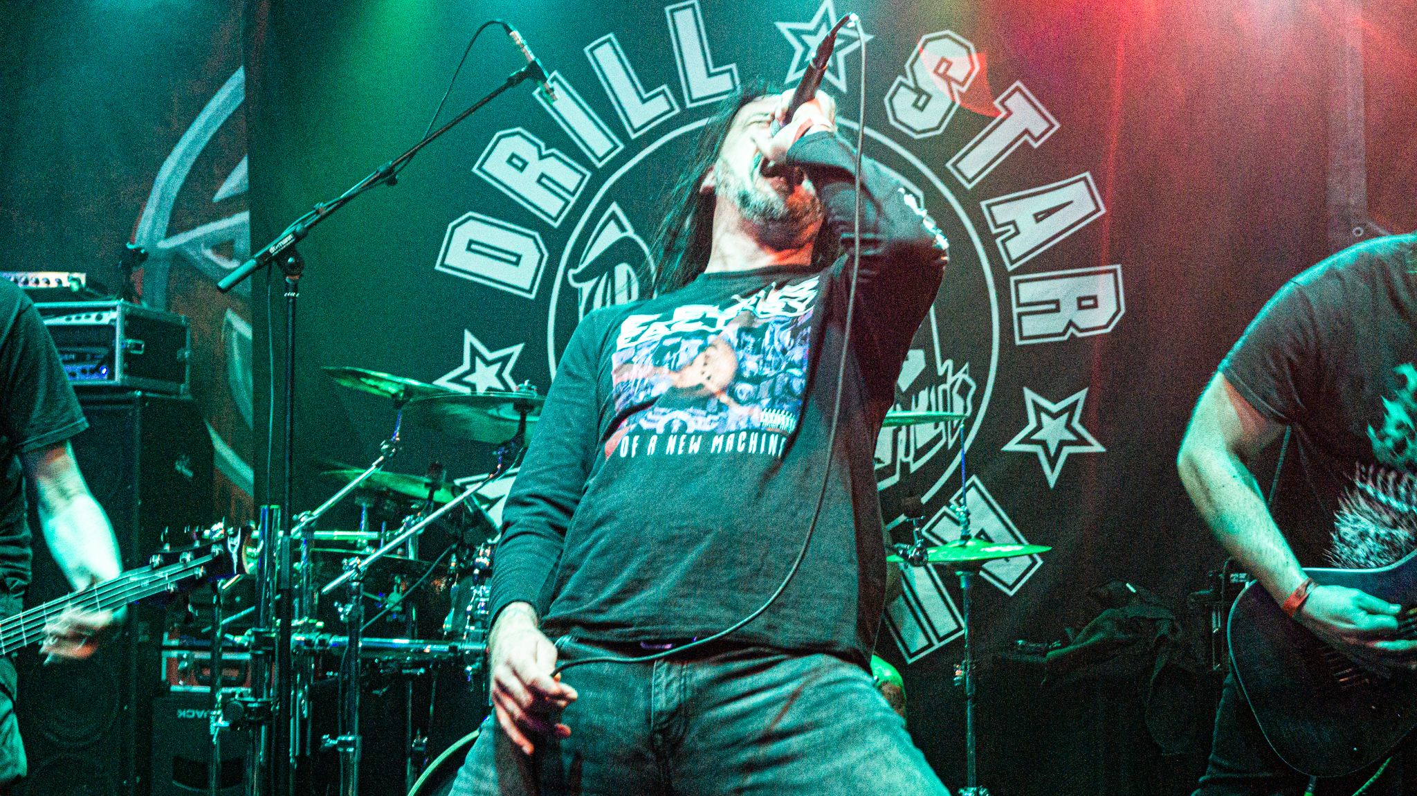 Den Anfang machen die mir bis dahin unbekannten DRILL STAR AUTOPSY. Die Jungs aus der Lutherstadt Eisleben spielen eine modernere Mischung aus Thrash und Death Metal. Das machen sie kompetent, nachdem der Sound nach 2 Songs passt. DSA überzeugen mit dem gut groovenden Stoff und Spielfreude. Insbesondere die Doublebass Figuren von Drummer Andre sind nicht von der Stange und legen ein gutes Fundament. Das Longsleeve von Sänger Sacha erinnert mich daran, dass ich bald mal wieder die ´Soul Of A New Machine´ von FEAR FACTORY auflegen muss. Mit dem KILLING JOKE Song 'This Tribal Antidote' macht die Band den Deckel auf einen gelungenen Auftritt. Ein guter Start in den Abend.
