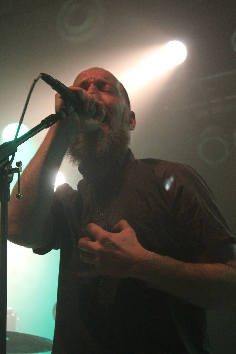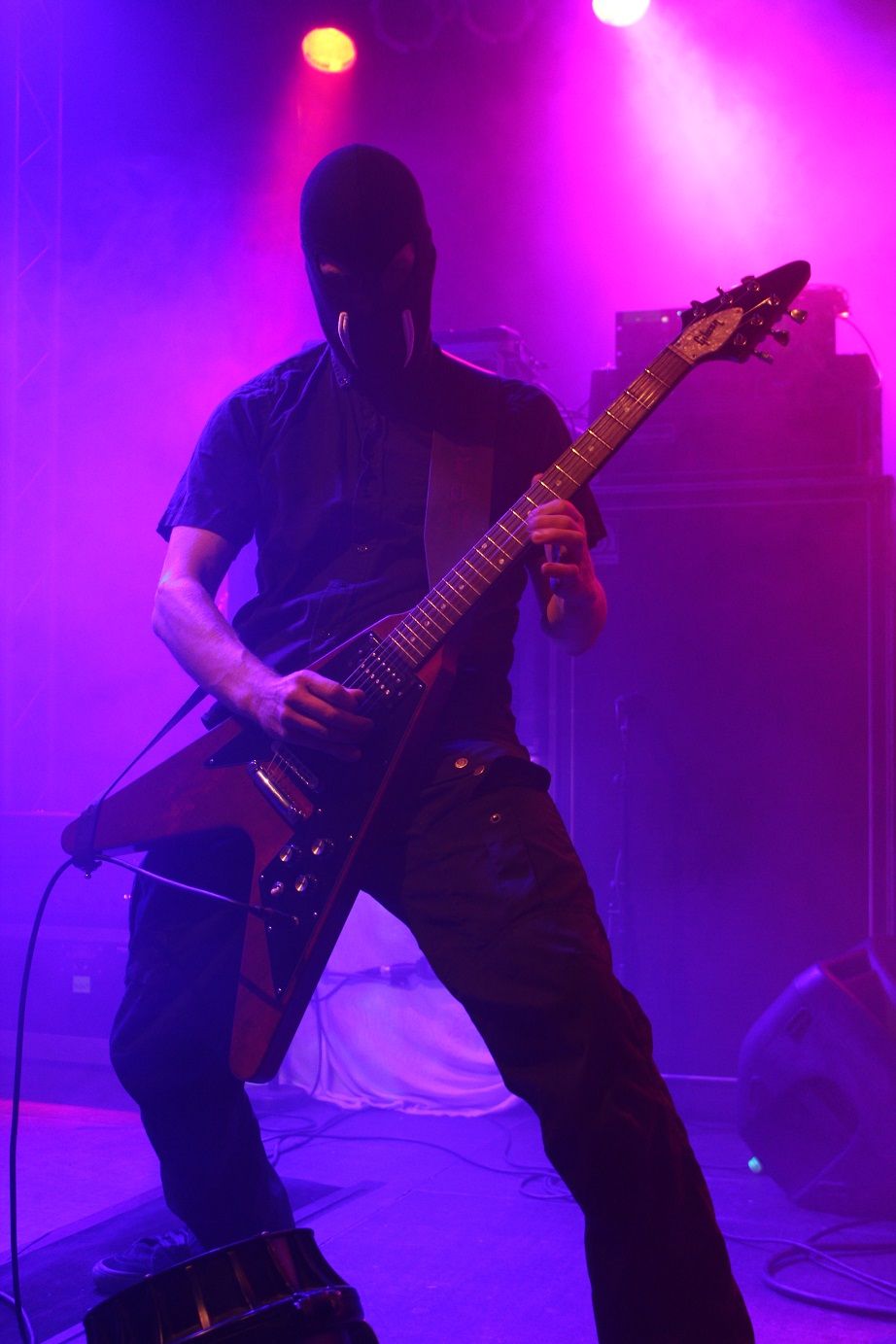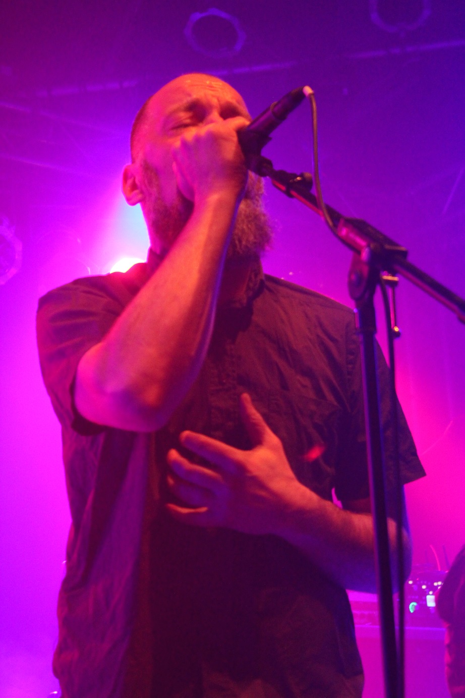Zum Start erringen die Osnabrücker von IRON WALRUS mehr als einen Achtungserfolg beim Hannoveraner Publikum. Der spannungsgeladene, doomige Stoner Rock des Quintetts, welches die Bühne mit Ausnahme des sympathischen wie charismatischen Sängers Aufi mit aufgenähten Walrosszähnen verzierten Sturmhauben betritt, weiß zu überzeugen und ist eine absolut positive Überraschung. Insbesondere durch die frappierende Ähnlichkeit mit der Stimme eines gewissen Jan-Chris de Koeijer klingen Iron Walrus mitunter wie Gorefest auf Stoner Rock, wobei das den Jungs insgesamt natürlich nicht wirklich gerecht wird. Ich kann die Band, welche nicht nur mit ihrer Performance skurilen und schrägen Humor bewiesen haben, insbesondere mit dem Video zum Song "I Hate People" empfehlen.