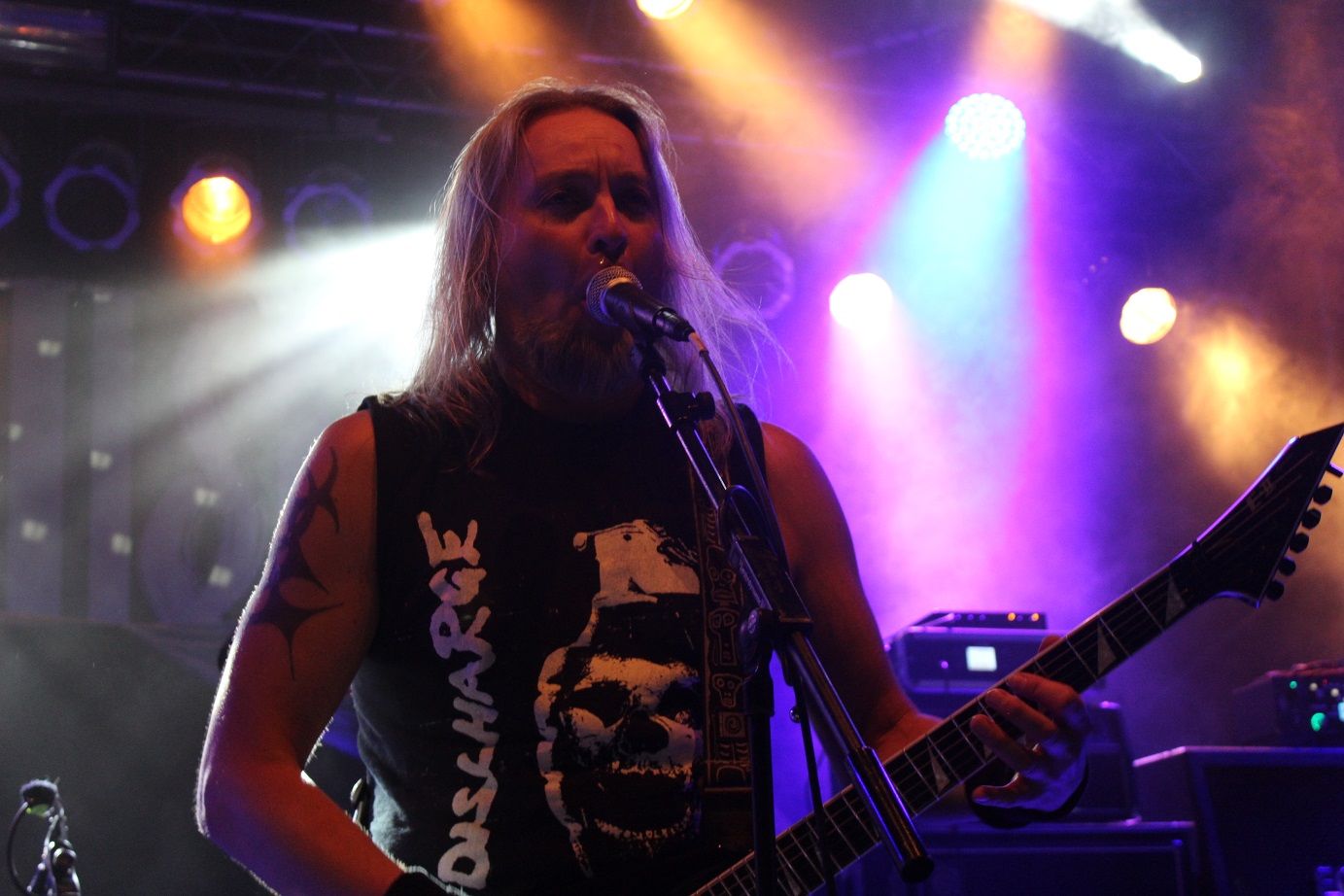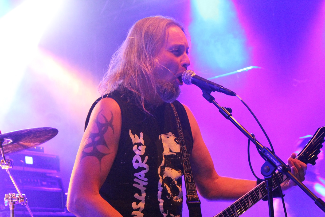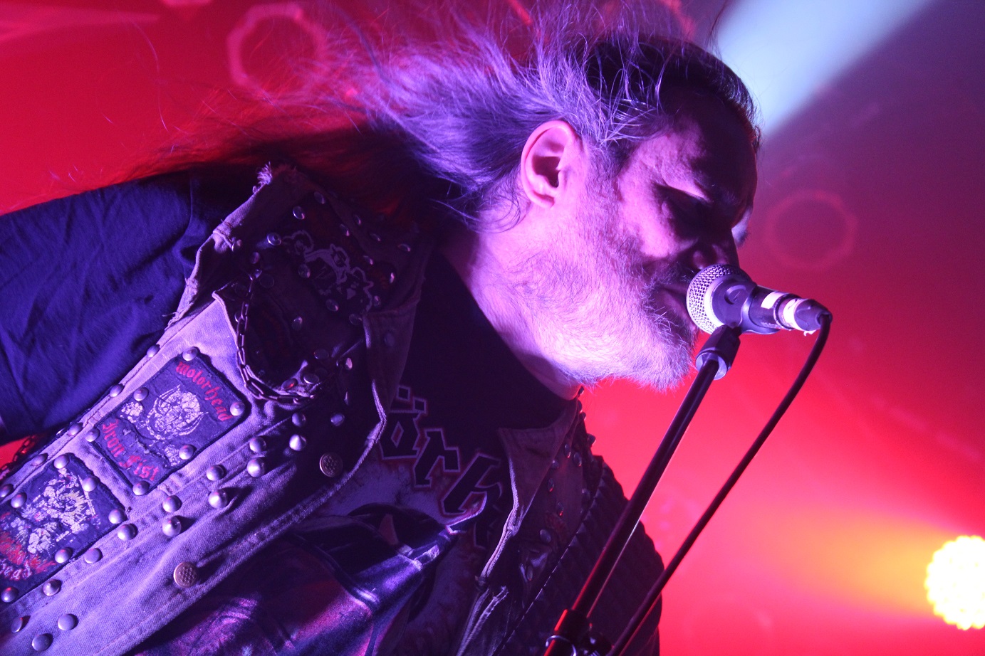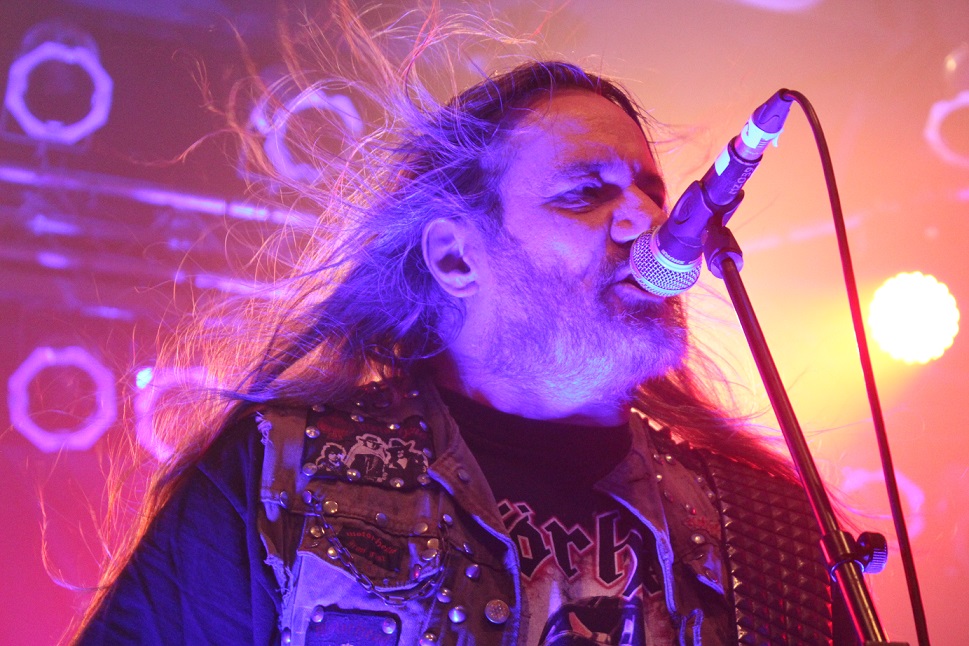 Die nächste Überraschung folgt mit ACCU§ER. Das deutsche Urgestein aus dem Siegerland erlebt gerade seinen dritten Frühling und obwohl die Thrasher seit 1986 eine beachtliche Diskografie vorzuweisen haben, sind Accu§er doch immer an mir vorbei gegangen. Schon mit den ersten Tönen fühle ich mich um 20 Jahre zurück versetzt. Das ist Thrash alter Schule, technisch anspruchsvoll und filigran, mit einer progressiven Note. Titel wie "Who Dominates Who" oder "Cannibal Insanity" gehen einfach ins Genick und in die Beine, insbesondere, wenn sie mit einer solchen Spielfreude wie am heutigen Abend vorgetragen werden. Mit "Mission Missile" gibt´s sogar noch einen neuen Song vom Anfang 2018 erscheinenden, neuen Album zu hören. Eine bärenstarke Rückkehr, die vom altermäßig bunt gemischten Publikum gebührend honoriert und gefeiert wird, sind doch erfreulich viele Jungspunde, die sich heute Abend für den Sound der ganz alten Schule zu begeistern wissen, anwesend.