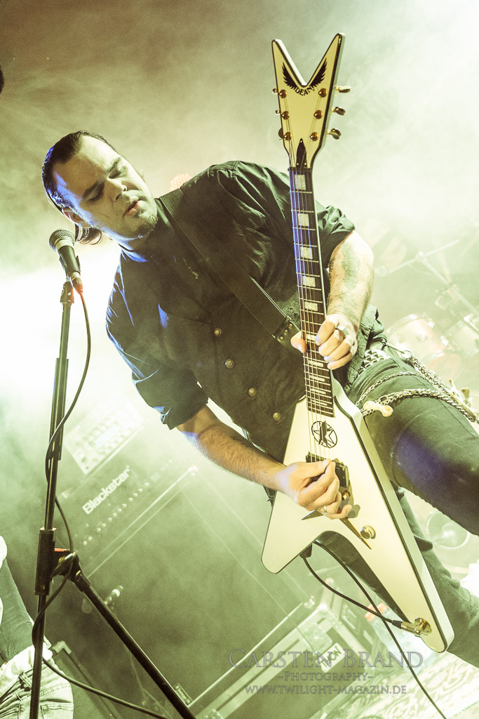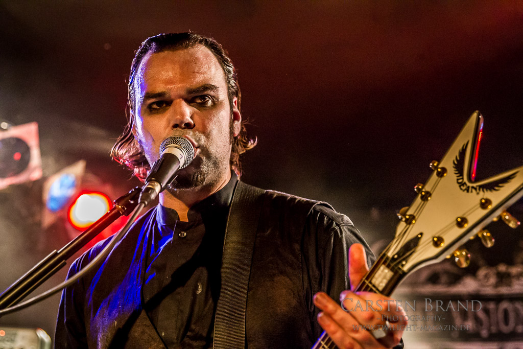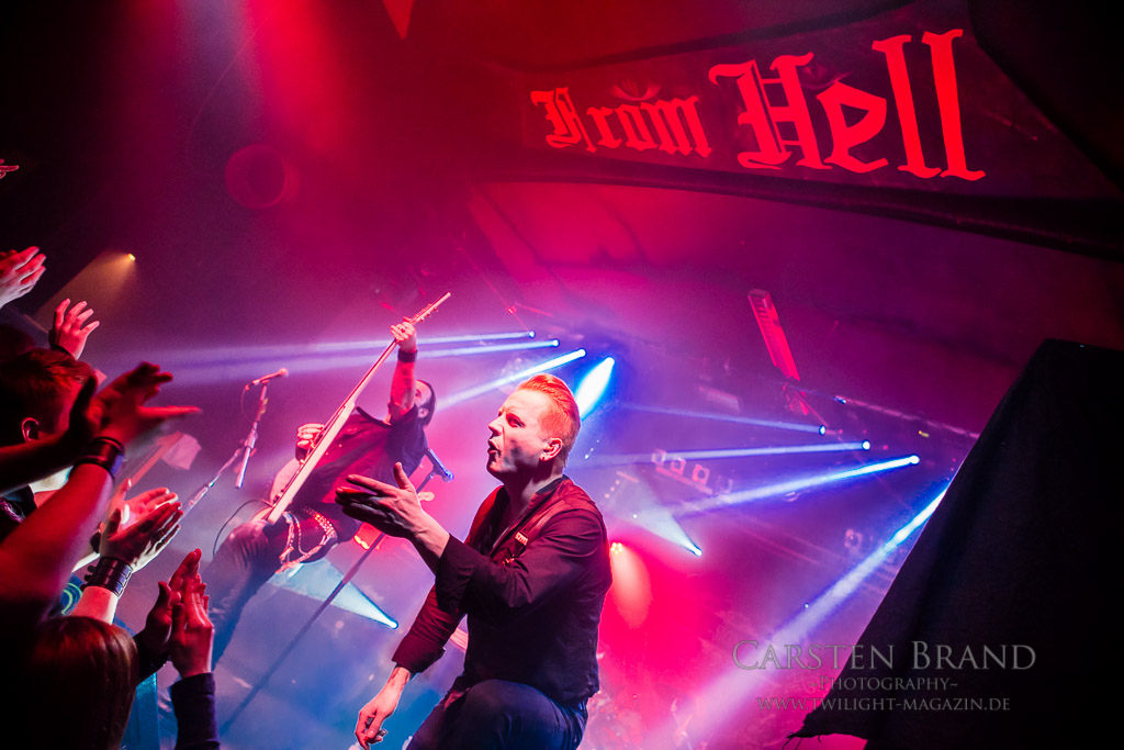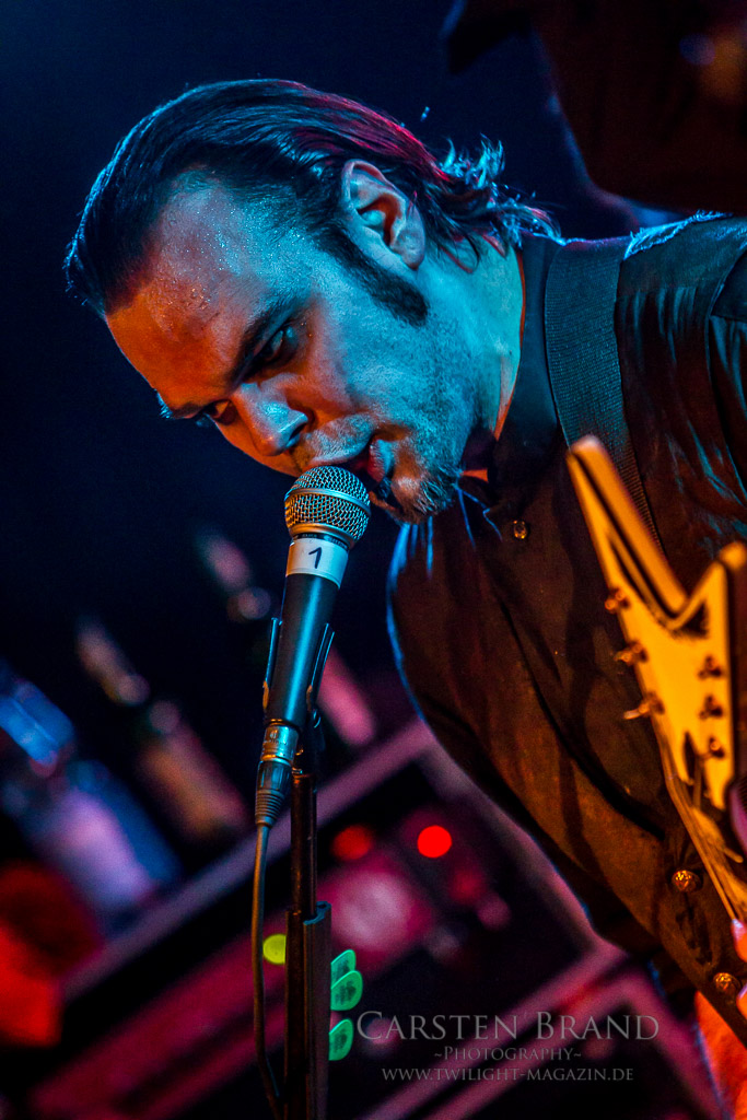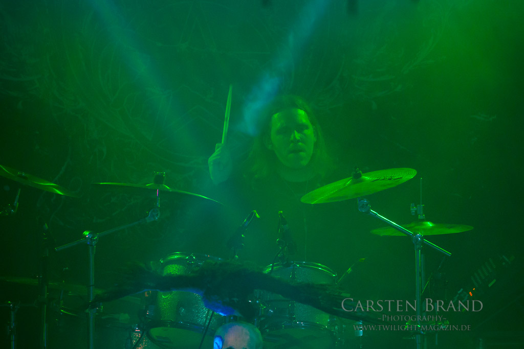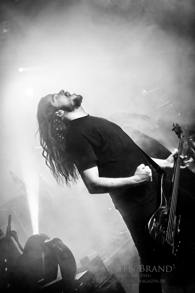 Doch auch Saturnus legten noch einmal eine Schippe drauf. Das From Hell bietet eine hervorragende Lichtanlage. Gepaart mit einem maßvollen Einsatz an Nebel verwandelt sich so die Bühne in eine hervorragende Kulisse. Wieder geht es düster-schwer zur Sache. Die etwas größere Bühne verschafft den einzelnen Musikern mehr Platz und es ist mehr Bewegung in der Bühnenshow zu verzeichnen.