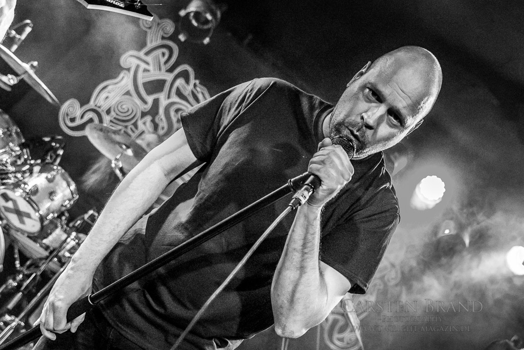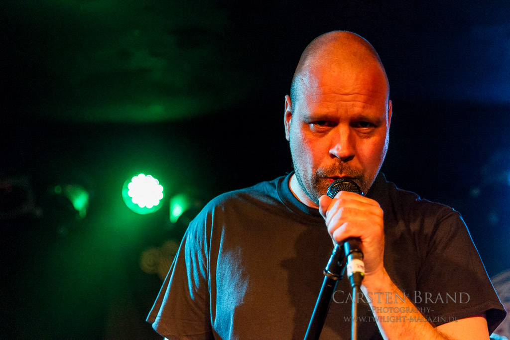 Schon einfacher war da der Auftritt von SATURNUS. Zwar schwingt auch hier eine reichliche Portion Doom mit und die Musik ist vergleichsweise schwere Kost, doch kommt mit den Dänen auch das Publikum in Fahrt. „Rain wash Me“ als Opener führt hinein in ein schleppendes Meer aus tiefen Growls unterstützt von schweren Gitarren. Auf SATURNUS muss man sich einlassen können und das kleine Marx ist selbst an diesem Sonntag der ideale Ort dafür. Die niedrige Bühne schafft eine unheimliche Nähe zur Band. Augen zu und abtauchen in eine fantastische, tief düstere Welt. Zwischen den Reihen sieht man auch einige Leute Headbangen. „Wind Torn“ und „Empty Handed“ seien als herausragende Stücke des Abends zu erleben. Sänger Thomas zeigt keine große Bühnenshow, doch wäre eine solche auch reichlich fehl am Platz bei derart Musik.