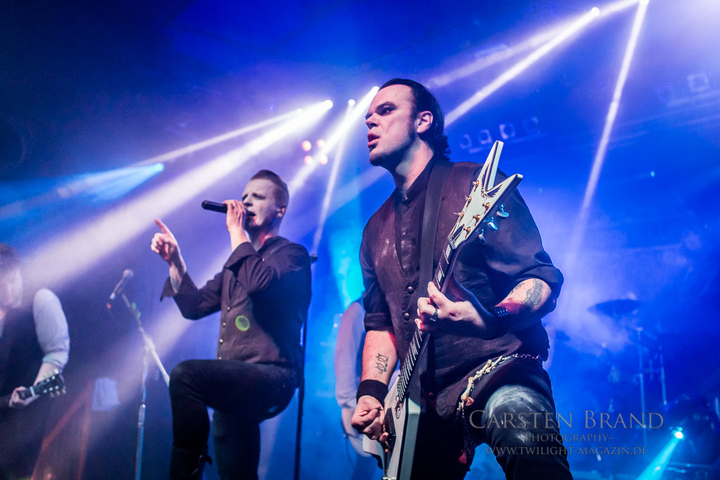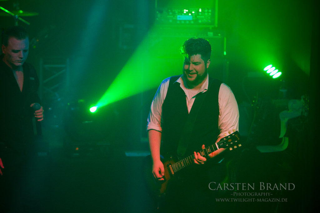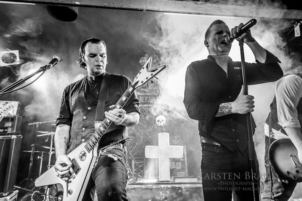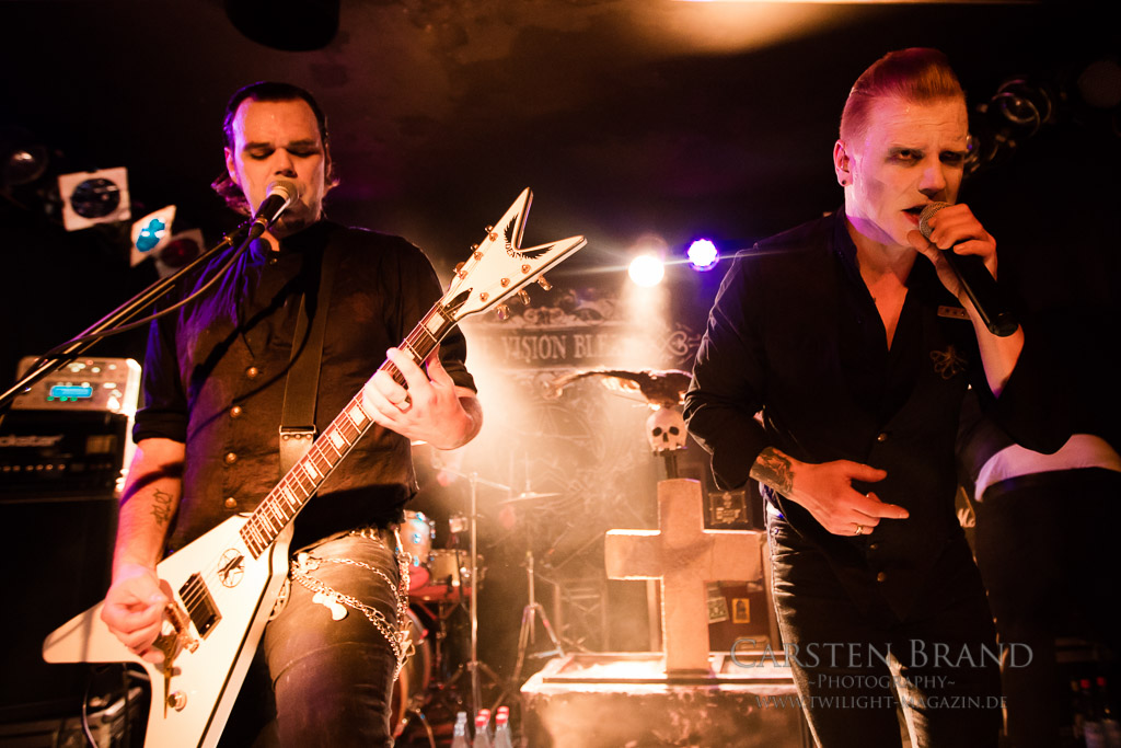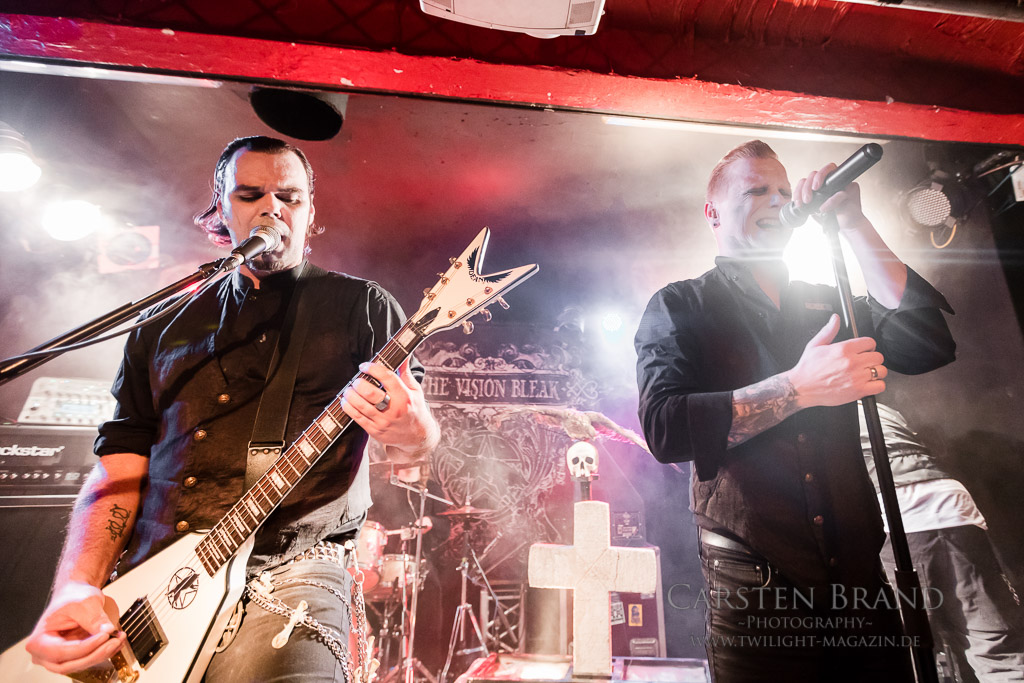 Nach kurzer Umbaupause wird es ein wenig voller im kleinen Marx und es ist Zeit für den Headliner. THE VISION BLEAK haben die Arbeiten zum neuen Album gerade abgeschlossen, eine EP gibt es bereits am Merch in Vinyl und CD Form zu ergattern. Passend dazu kommt die INTO THE UNKNOWN -Tour daher. Mit sichtlicher Spielfreude und einer gehörigen Portion Motivation betreten die Herren Schwadorf, Konstanz und Co die Bühne. Mit „Spirit oft he dead“ geht es hinein in eine schaurig schöne Setlist. „Night oft he living dead“ ist zwar eines der älteren Stück, funktioniert aber immer. Neben einer perfekt eingespielten Band, ist auch das Publikum nun mehr als warm und geht fleißig mit. „The Kindred of the sunset“ war bereits als Vorab Video im Netz zu bewundern und auch live überzeugt der Titel auf ganzer Linie. Weiter geht es quer durch den Vision Bleak´schen Gemüsegarten. Eine fantastische Zeitreise aus neuen und alten Stücken, was die Fans ordentlich in Stimmung bringt. Mit „The Lone Night Rider“ schließt eine großartige Setlist und die Band verabschiedet sich in den Feierabend, nicht ohne noch fleißig Autogramme am Merch Stand zu geben.