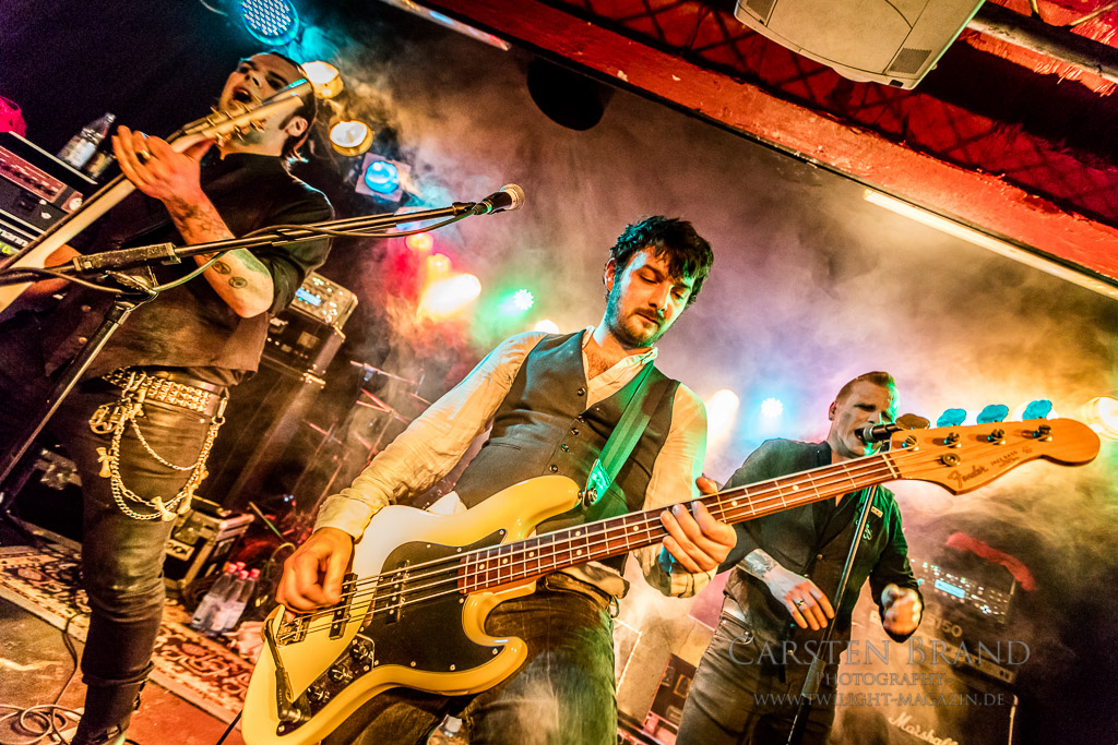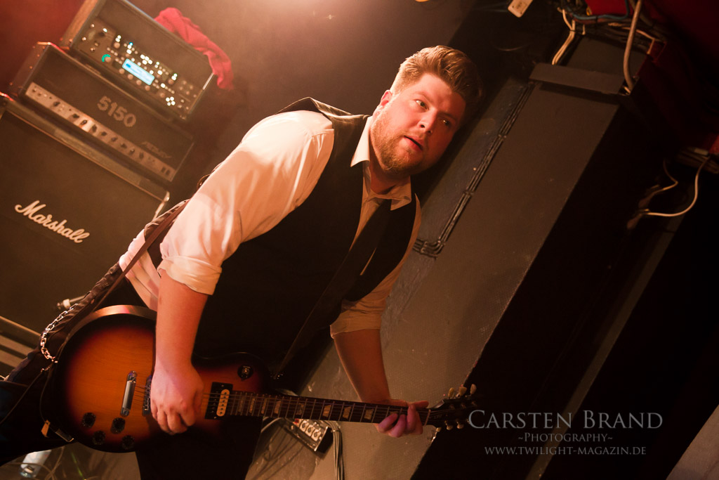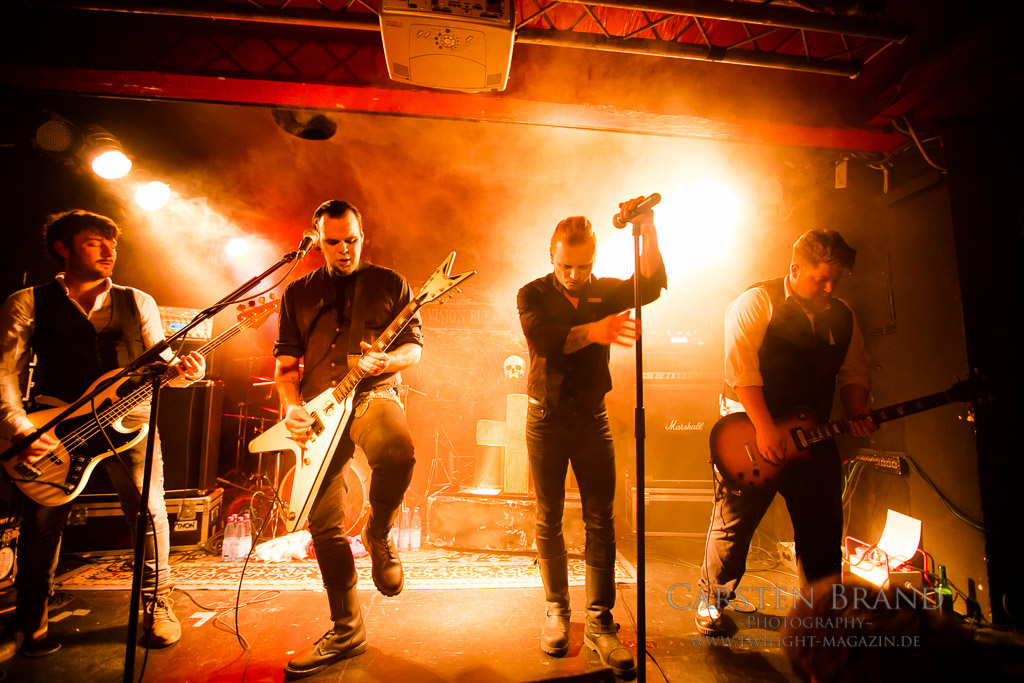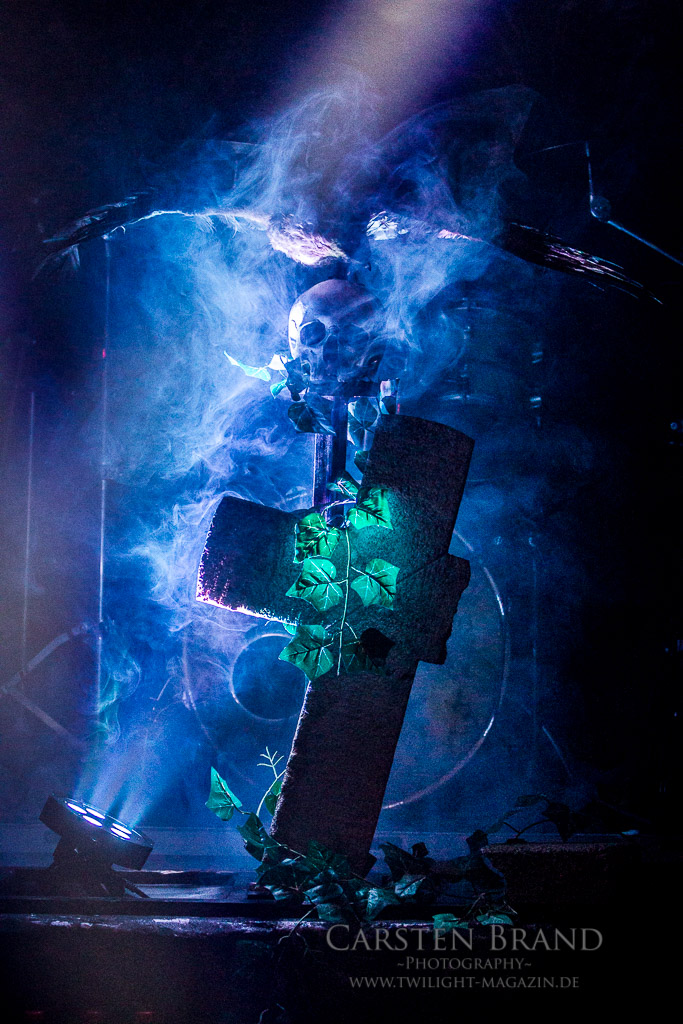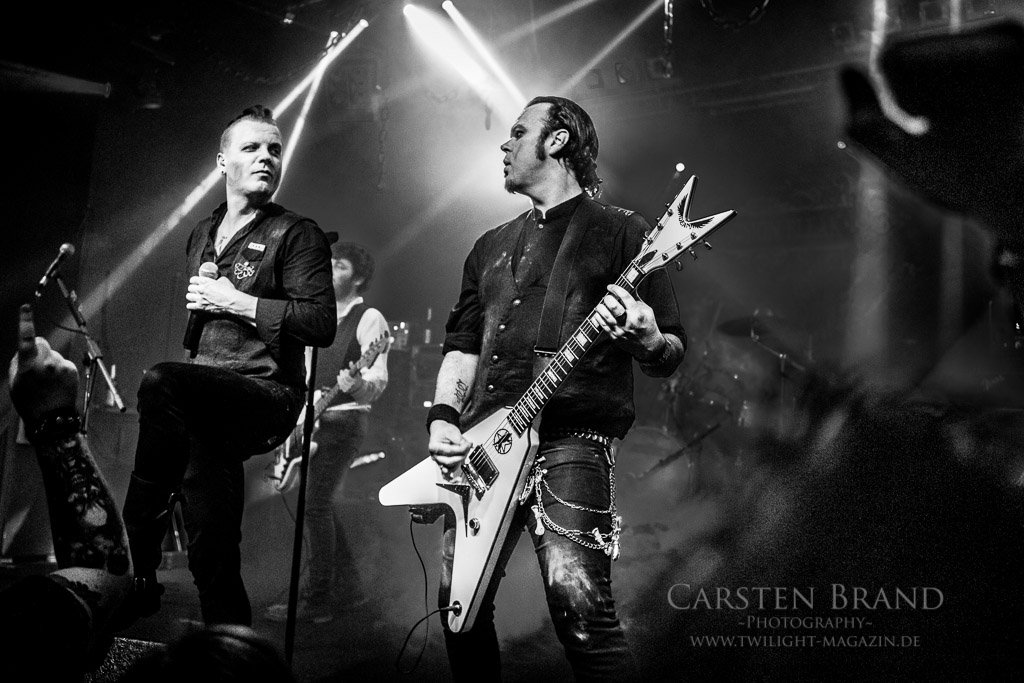 Nach kurzer Umbaupause wird es ein wenig voller im kleinen Marx und es ist Zeit für den Headliner. THE VISION BLEAK haben die Arbeiten zum neuen Album gerade abgeschlossen, eine EP gibt es bereits am Merch in Vinyl und CD Form zu ergattern. Passend dazu kommt die INTO THE UNKNOWN -Tour daher. Mit sichtlicher Spielfreude und einer gehörigen Portion Motivation betreten die Herren Schwadorf, Konstanz und Co die Bühne. Mit „Spirit oft he dead“ geht es hinein in eine schaurig schöne Setlist. „Night oft he living dead“ ist zwar eines der älteren Stück, funktioniert aber immer. Neben einer perfekt eingespielten Band, ist auch das Publikum nun mehr als warm und geht fleißig mit. „The Kindred of the sunset“ war bereits als Vorab Video im Netz zu bewundern und auch live überzeugt der Titel auf ganzer Linie. Weiter geht es quer durch den Vision Bleak´schen Gemüsegarten. Eine fantastische Zeitreise aus neuen und alten Stücken, was die Fans ordentlich in Stimmung bringt. Mit „The Lone Night Rider“ schließt eine großartige Setlist und die Band verabschiedet sich in den Feierabend, nicht ohne noch fleißig Autogramme am Merch Stand zu geben.